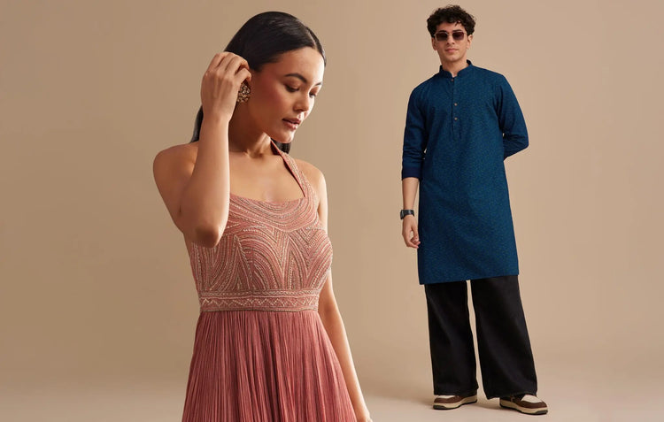 If you are wondering how to dress for a wedding on the beach while keeping your style true to Indian wear, it is all about light fabrics and smart layering. Choose an Anarkali in muslin, a chiffon saree or a crepe lehenga that feels easy to wear. Swap out your heels for flat sandals or bridal anklets and accessorise with shell-inspired or oxidised jewellery. For mothers of the bride or groom, our beach wedding wear for mothers includes elegant layered suits, flowing gowns and sarees in soft silks. When in doubt, keep it minimal and let the setting do the rest. Our team can also help with clothes to wear to a beach wedding-styling assistance is just a click away.