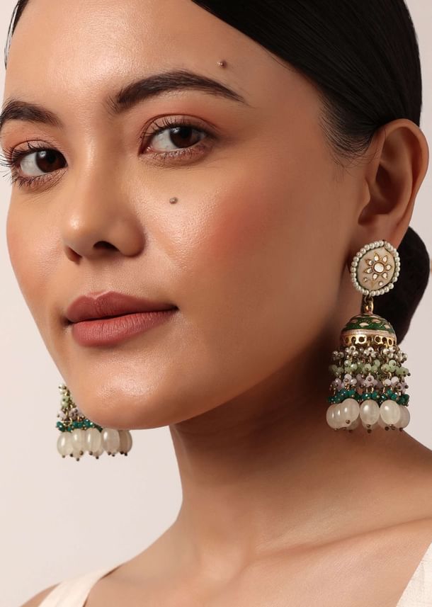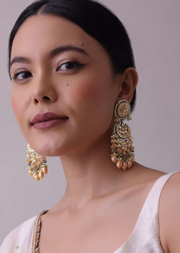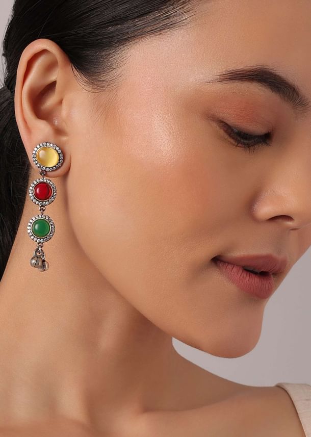 Multi Color Oversized Fusion Danglers With Bead Drops And Meenakari Work