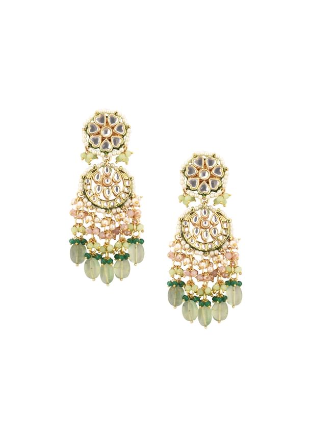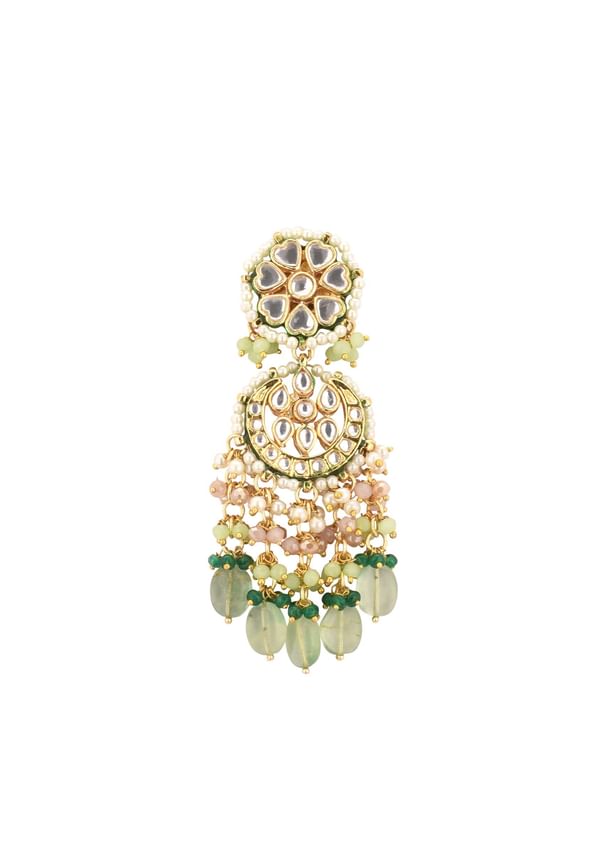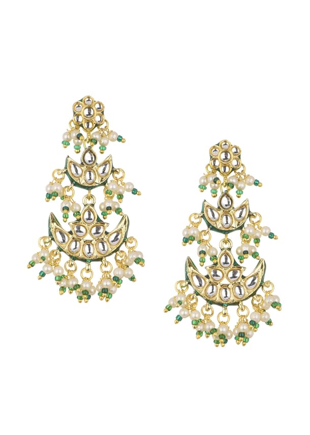Green Tiered Maangtikka With Studded Kundan And Crescent Moon Motifs