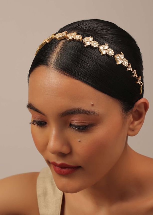 Gold Phool Sitara Maatha Patti With Mirror Polki