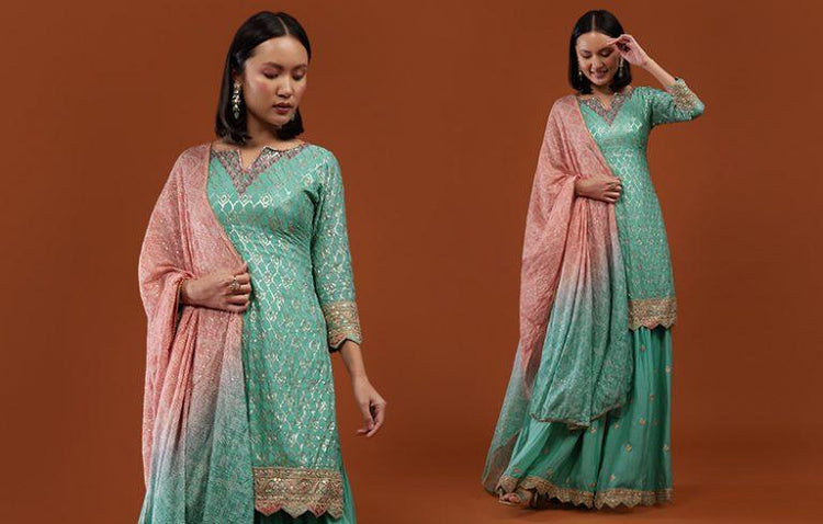 Green Chinon Anarkali Suit With Sequin And Resham Embroidery