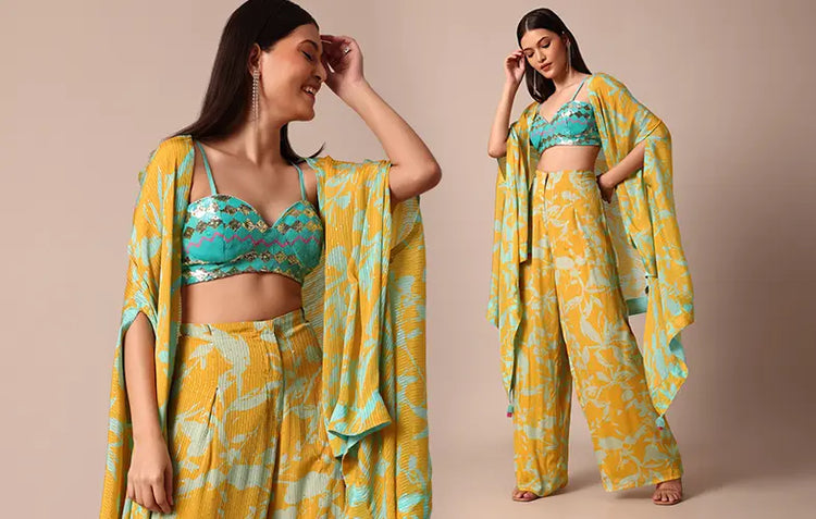 Yellow Embellished Croptop Palazzo Set With Dupatta
