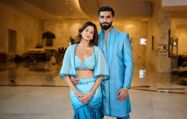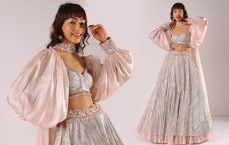 Sky Blue Crepe Sequence Lehenga With Full Sleeve Blouse
