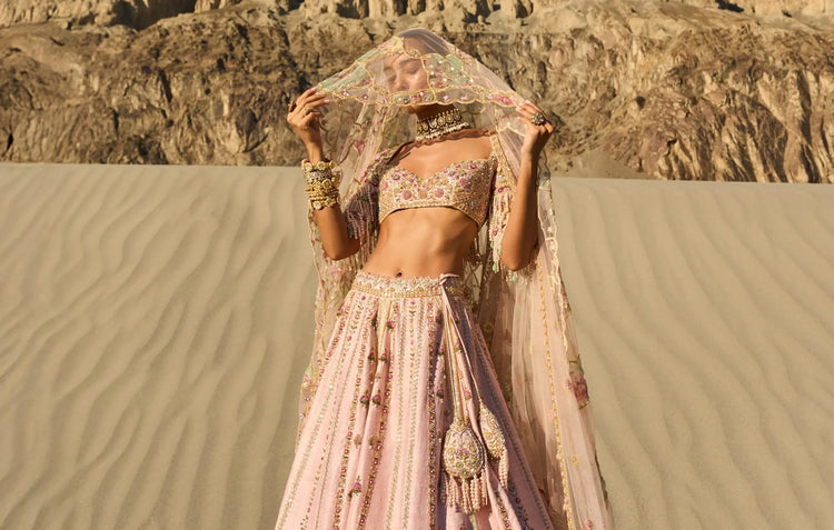 Pink Crepe Bridesmaid Lehenga With Heavy Embroidery