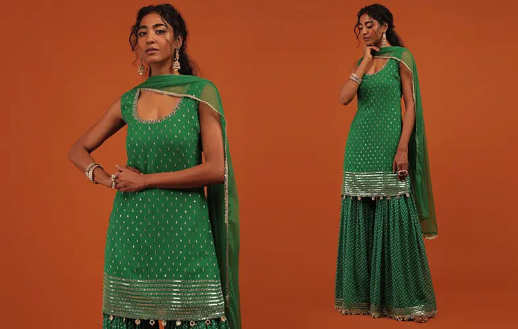 Silk Sharara Suit: Ideal for formal occasions and winter weddings. A silk sharara adds regal weight and shine, making it a perfect statement look.