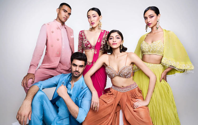 KALKI offers a diverse range of wedding dresses from traditional and ethnic sarees that lehenga cholis, sharara suits , and Anarkali suits for various wedding events. You can also explore fusion dresses like gowns, and A-line dresses to find the perfect outfit for every ceremony including sangeet, haldi, mehendi and reception.