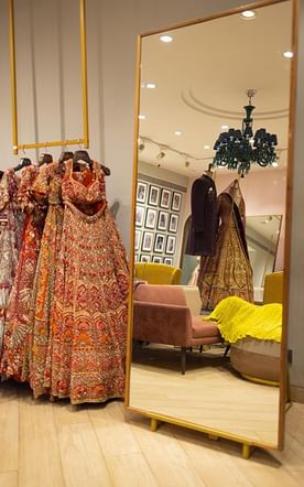 The bridal store guarantees to hold the best trousseau treasures. Extravagant bridal lehengas, elegant anarkalis, traditional kurtas, kid’s lehengas and traditional salwar kameez and accessories like potlis, bridal footwear and jewellery make your head-scratching task a little easier.