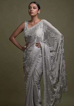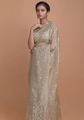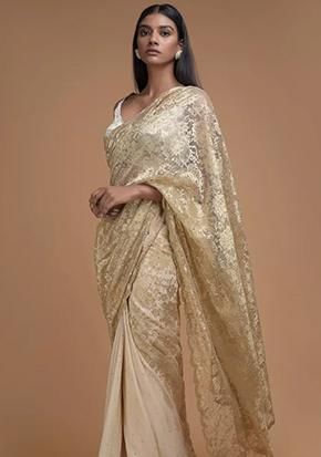 lace Saree:Lace is a patterned fabric produced with machine or some intricate handwork by looping, bradding or twisting of threads. It’s often woven from cotton, silk or rayon. The fabric has an open weave with visible spaces in between.