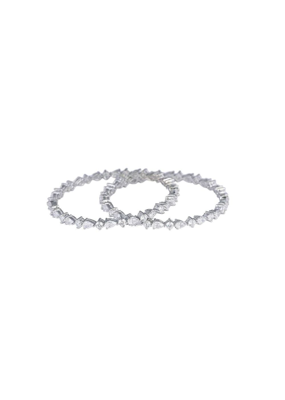 92.5 Sterling Silver Bangles With Zirconia Stones Set of 2
