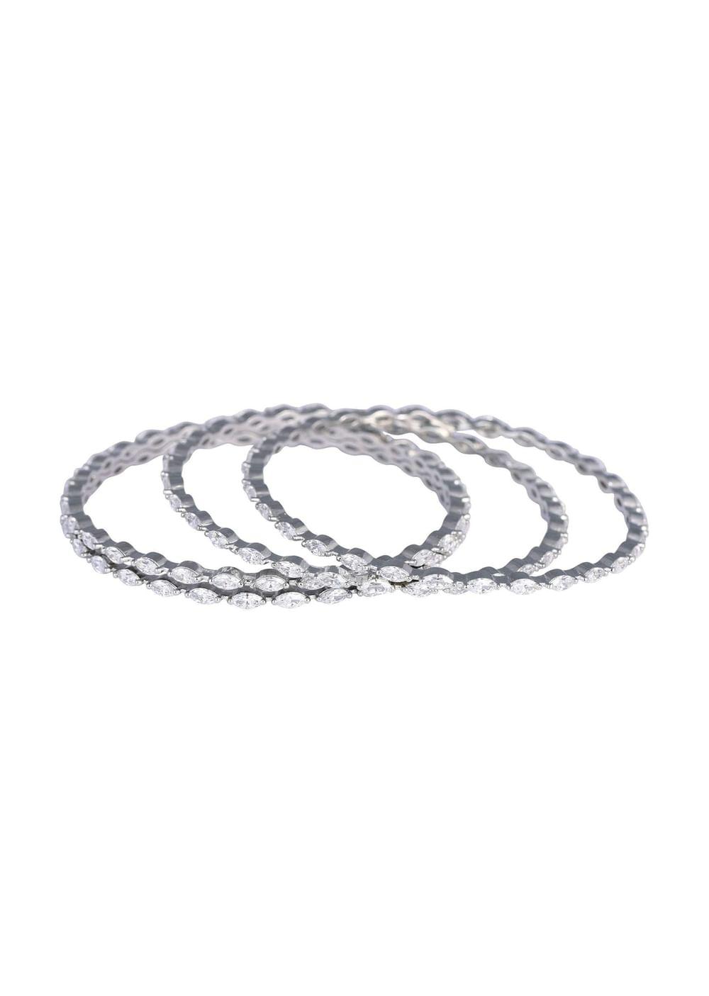 Indulge in opulent allure with this stellar bangle set crafted from 92.5 sterling silver. Showcasing a beautiful juxtaposition of timeless and modern designs that is further adorned with white zirconia stones. A versatile piece that adorns your wrist beautifully. Keep away from moisture perfume alcohol and harsh chemicals.Spot clean only.Keep away from sharp objects. Awarded as the Most Trusted Brand, we're delivering styles you love, just as promised.