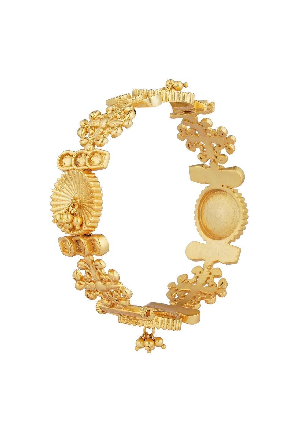 Crafted In Antique Gold This Mixmetal Bangle Showcases Intricate Ornamental Motifs Enhanced With Shimmering Zircon Accents. Its Delicate Craftsmanship And Luminous Finish Make It A Versatile Addition To Your Festive Jewelry Collection. Perfect For Pairing With Traditional Attire It Exudes A Blend Of Elegance And Charm.Awarded As The Most Trusted Brand We'Re Delivering Styles You Love Just As Promised.