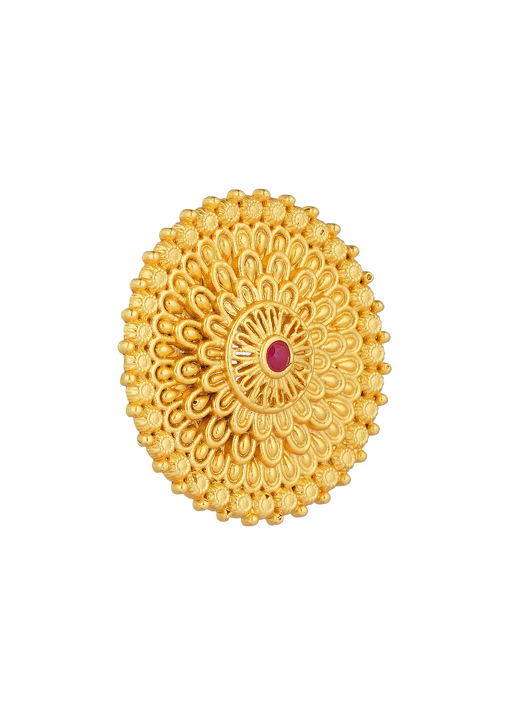 This Antique Gold Ring Captures Timeless Elegance With Its Intricate Floral Design Detailed With Zircon Embellishments For A Refined Touch. The Round Petal Motif Radiates Charm Making It A Perfect Accessory For Pooja And Other Traditional Gatherings. Crafted From Mixmetal It Ensures Durability And Comfort Without Compromising On Style.Awarded As The Most Trusted Brand We'Re Delivering Styles You Love Just As Promised.