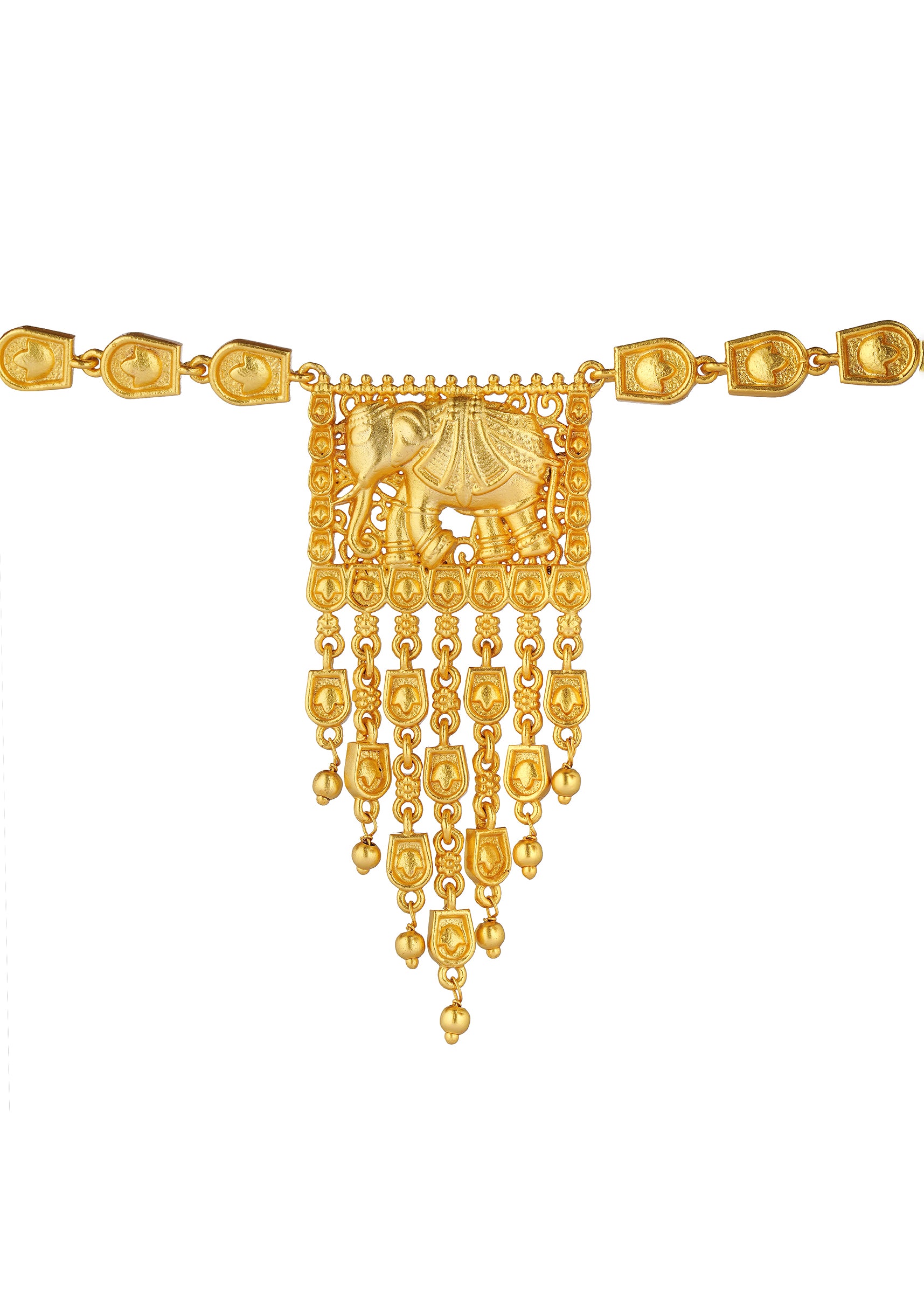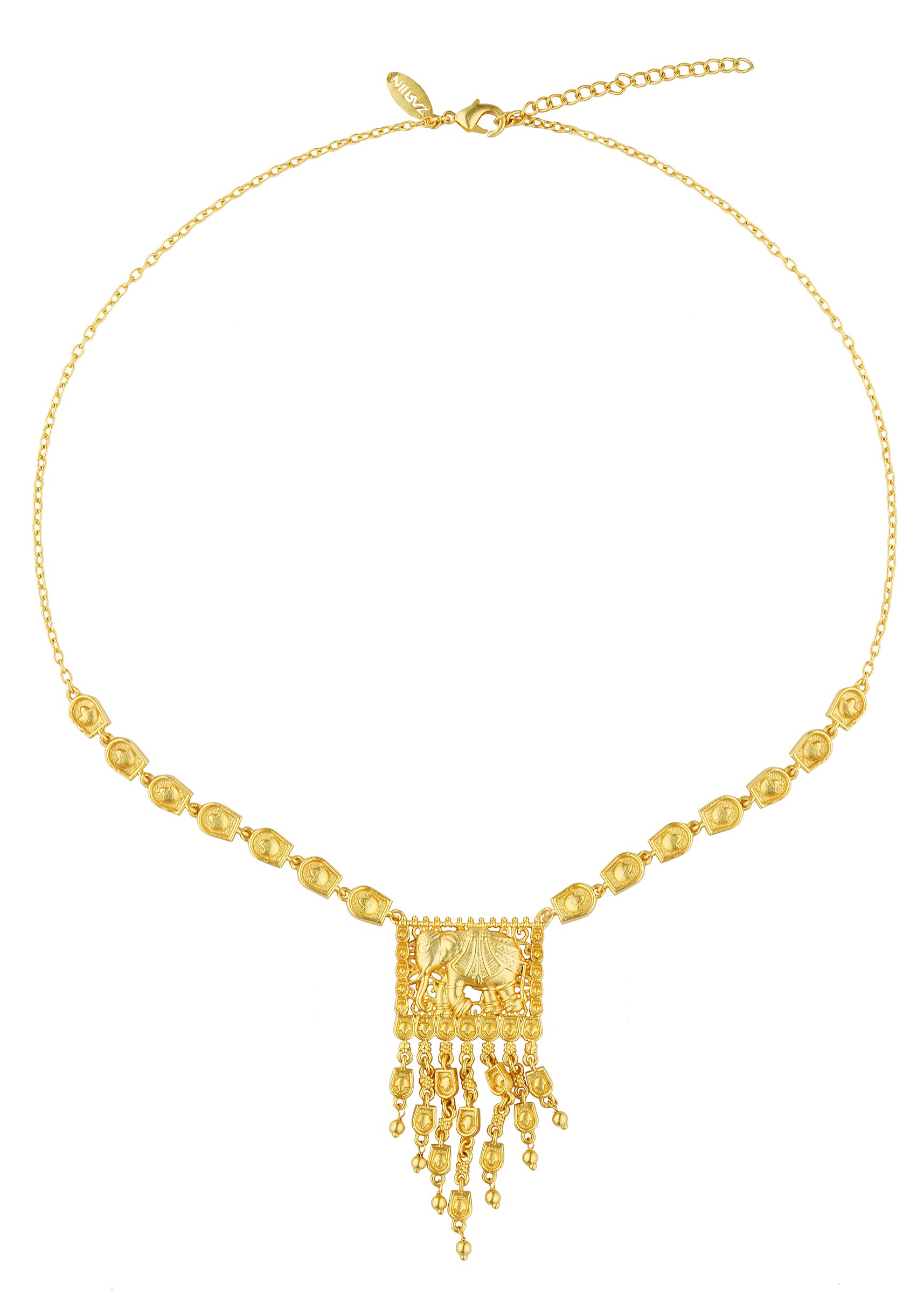 This Antique Gold Pendant Necklace Features A Tuskinspired Motif Adorned With Zircon Details Beautifully Suspended From A Mix Metal Chain. The Fusion Of Bold Design And Delicate Craftsmanship Makes It A Standout Piece For Festive Occasions. The Pendant'S Intricate Details Are Complemented By The Chain'S Textured Design Offering A Harmonious Blend Of Elegance And Tradition.Awarded As The Most Trusted Brand We'Re Delivering Styles You Love Just As Promised.