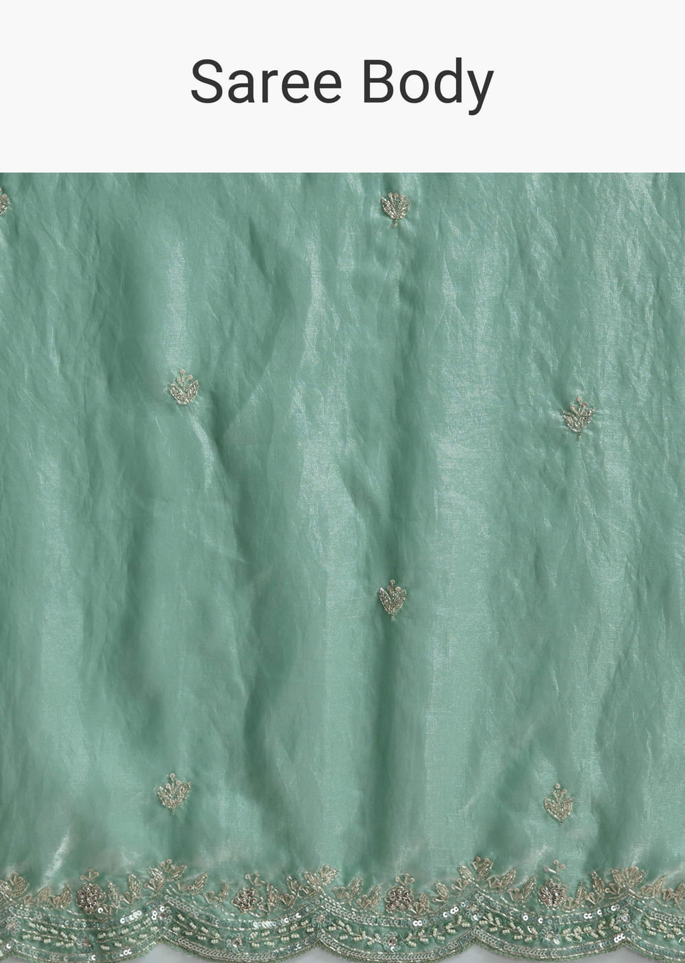 Aqua Green Chinon Embroidered Saree With Floral Embroidery