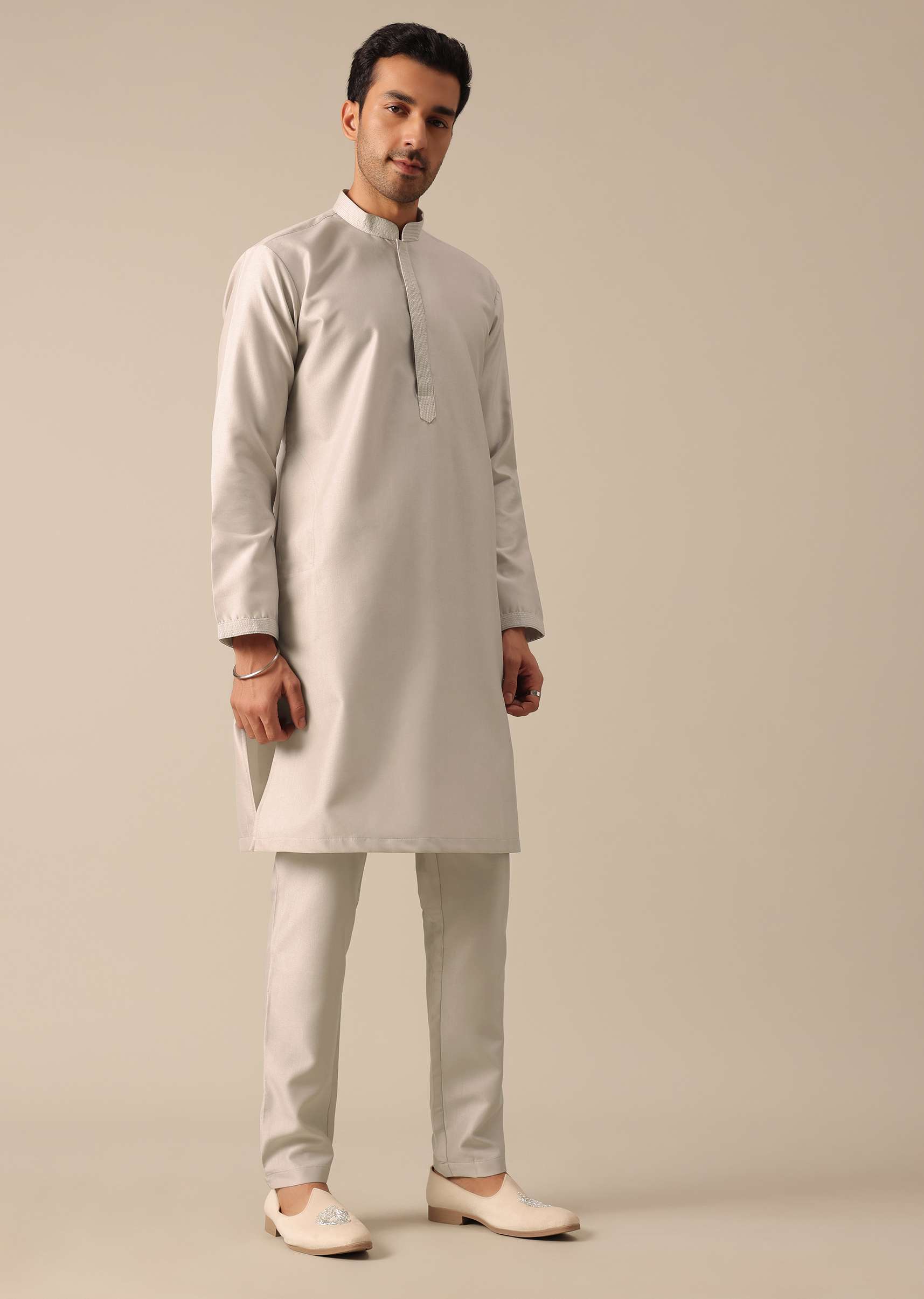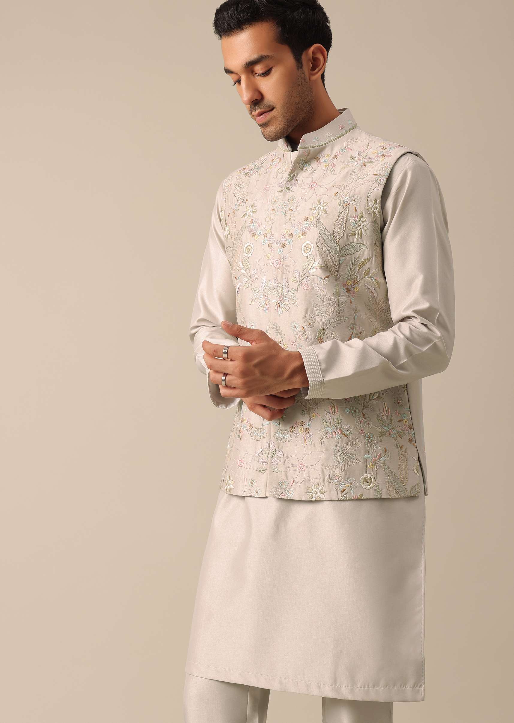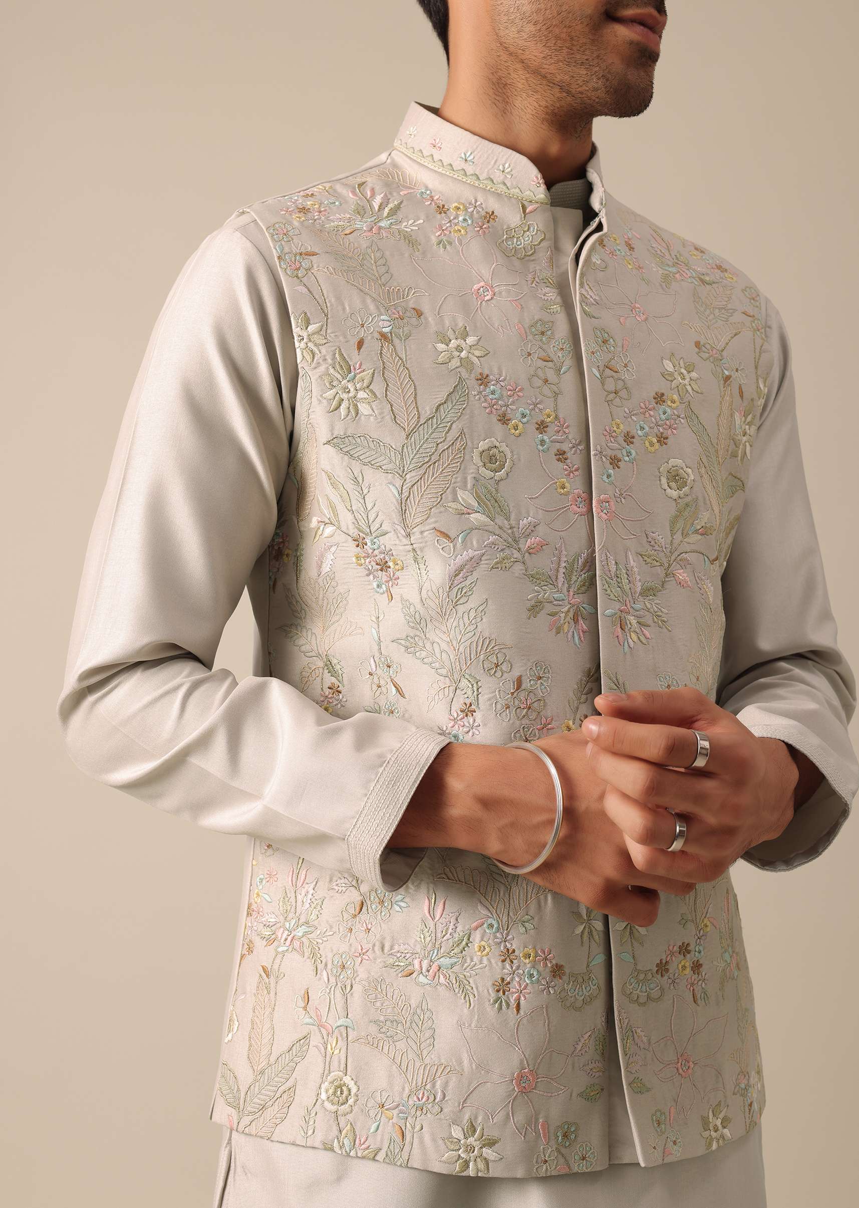 Ash Grey Jacket And Kurta Set With Floral Motifs