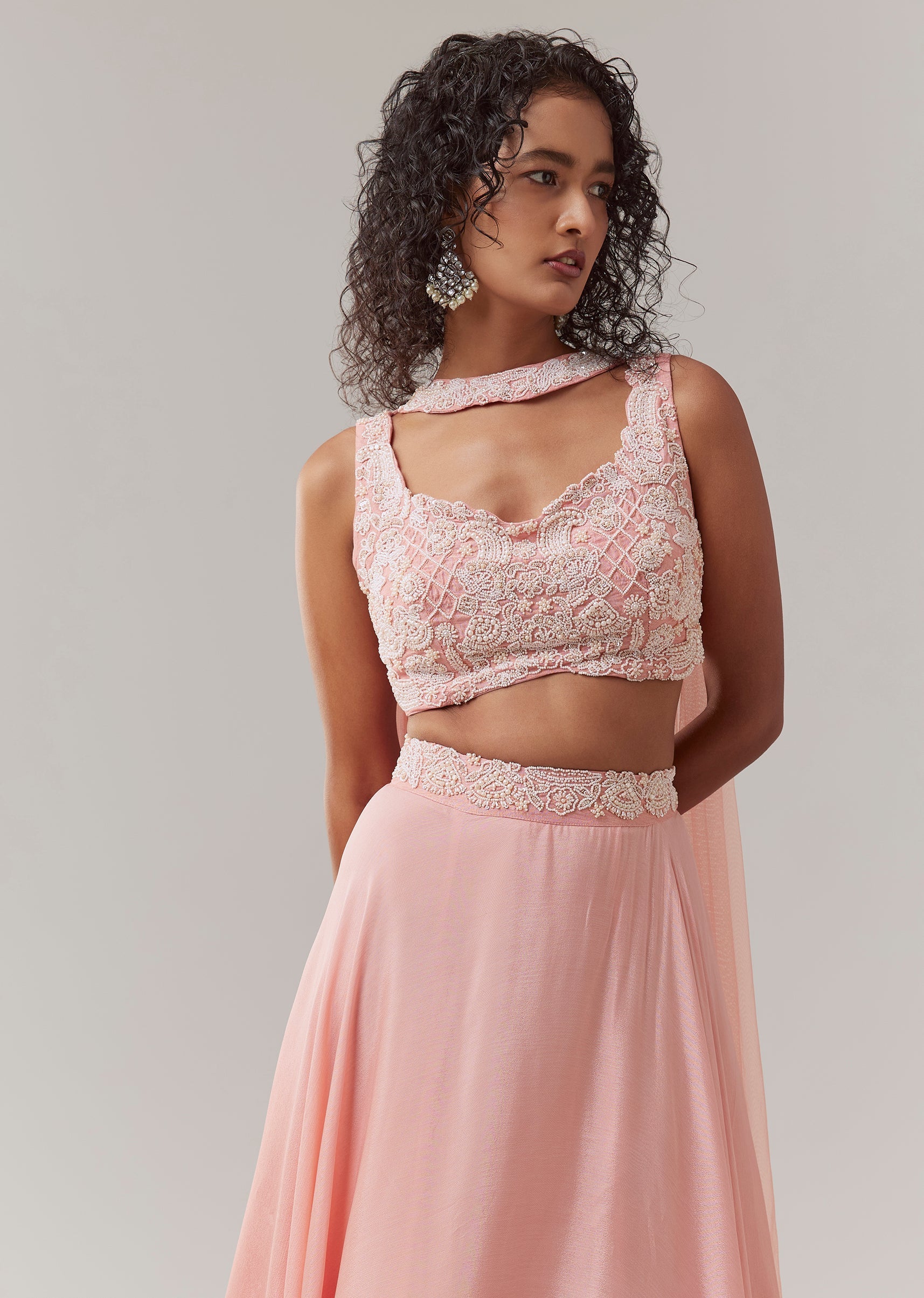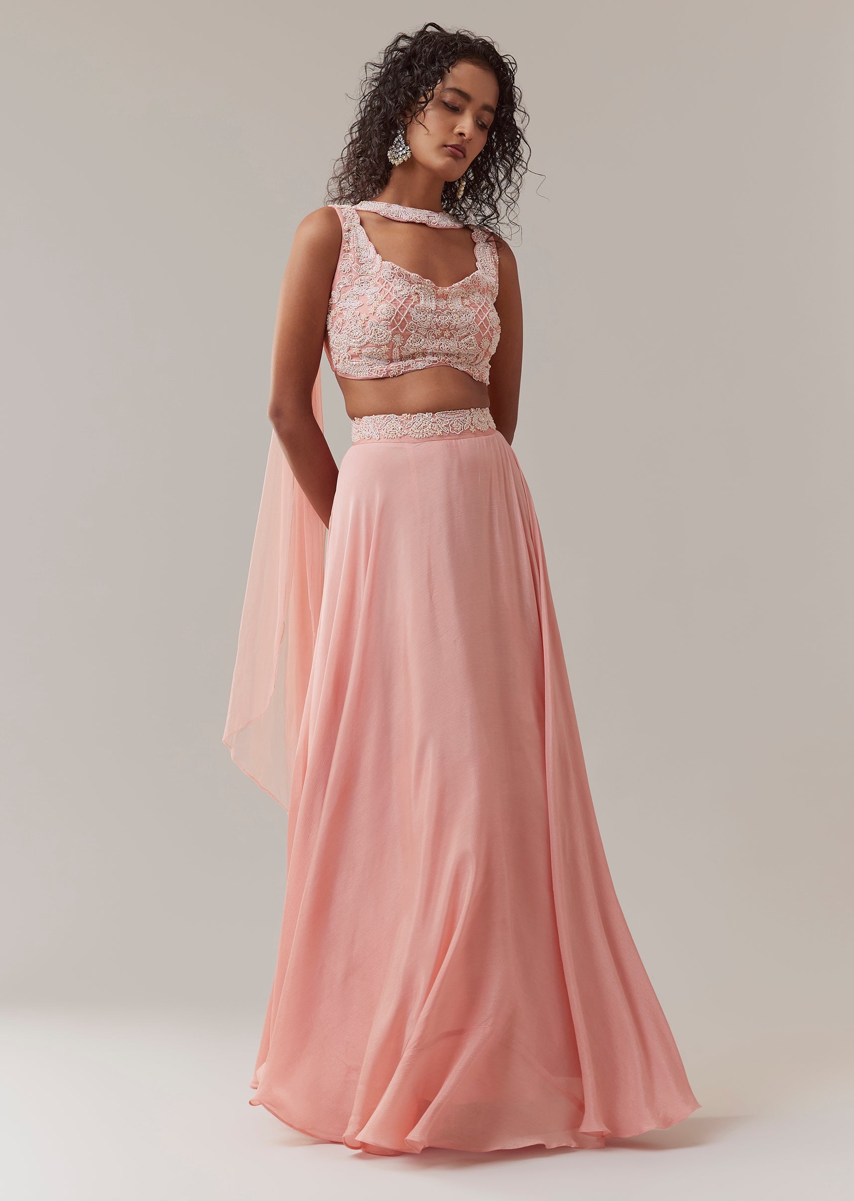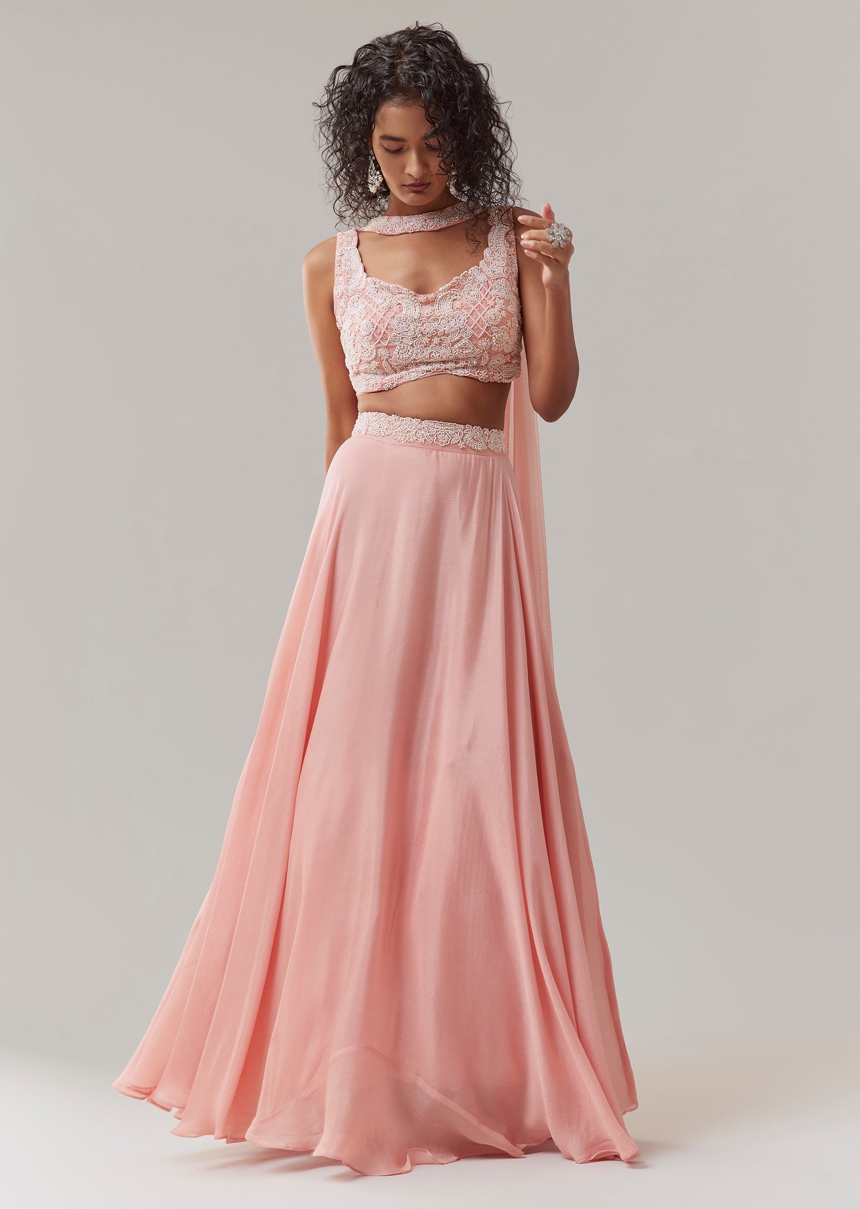 Baby Pink Chinon Silk Lehenga Set