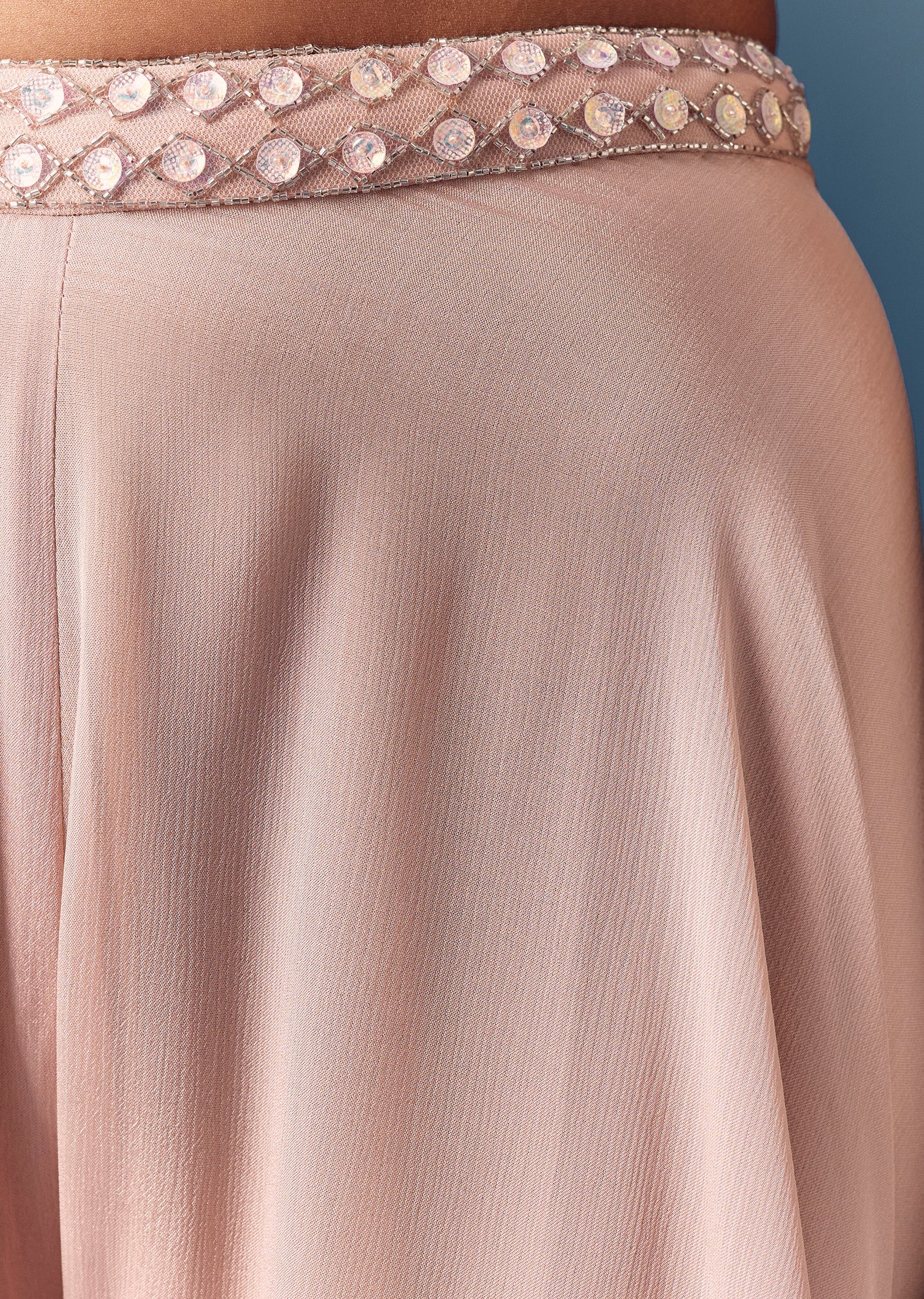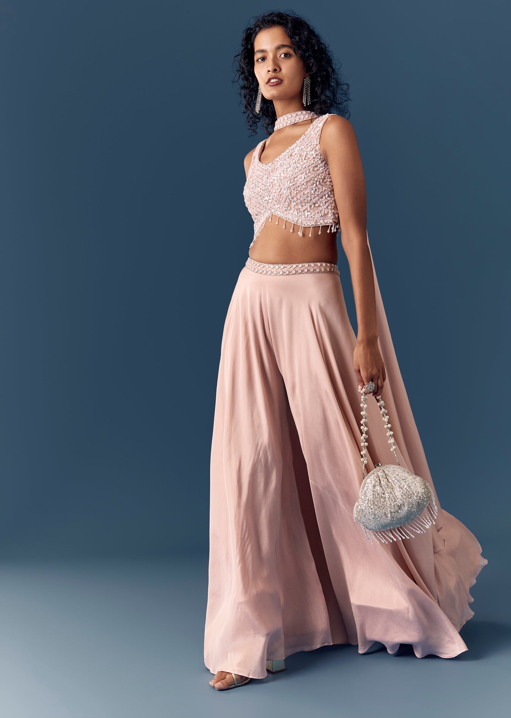 Baby Pink Embellished Croptop Palazzo Set With Dupatta