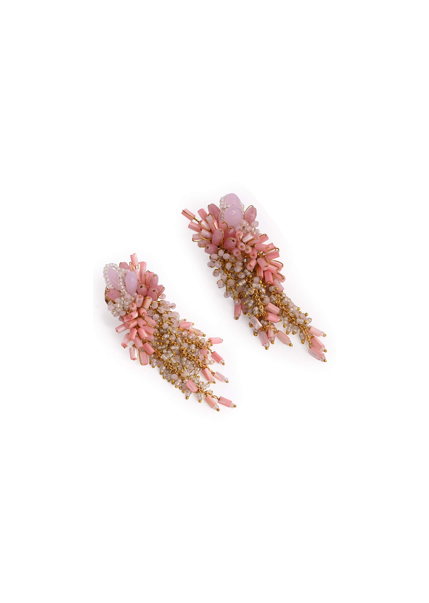 Baby Pink Shaded Gold Plated Chain Tassel Long Earrings