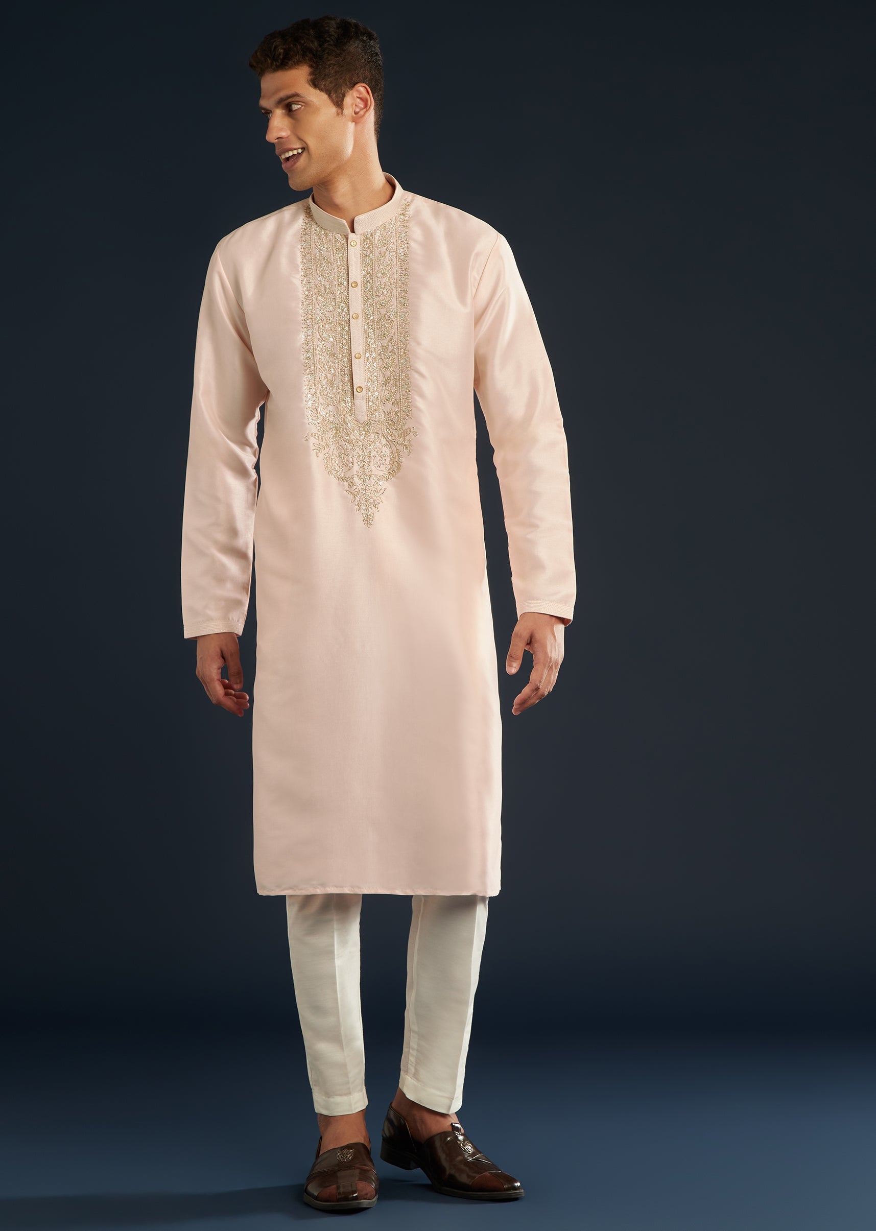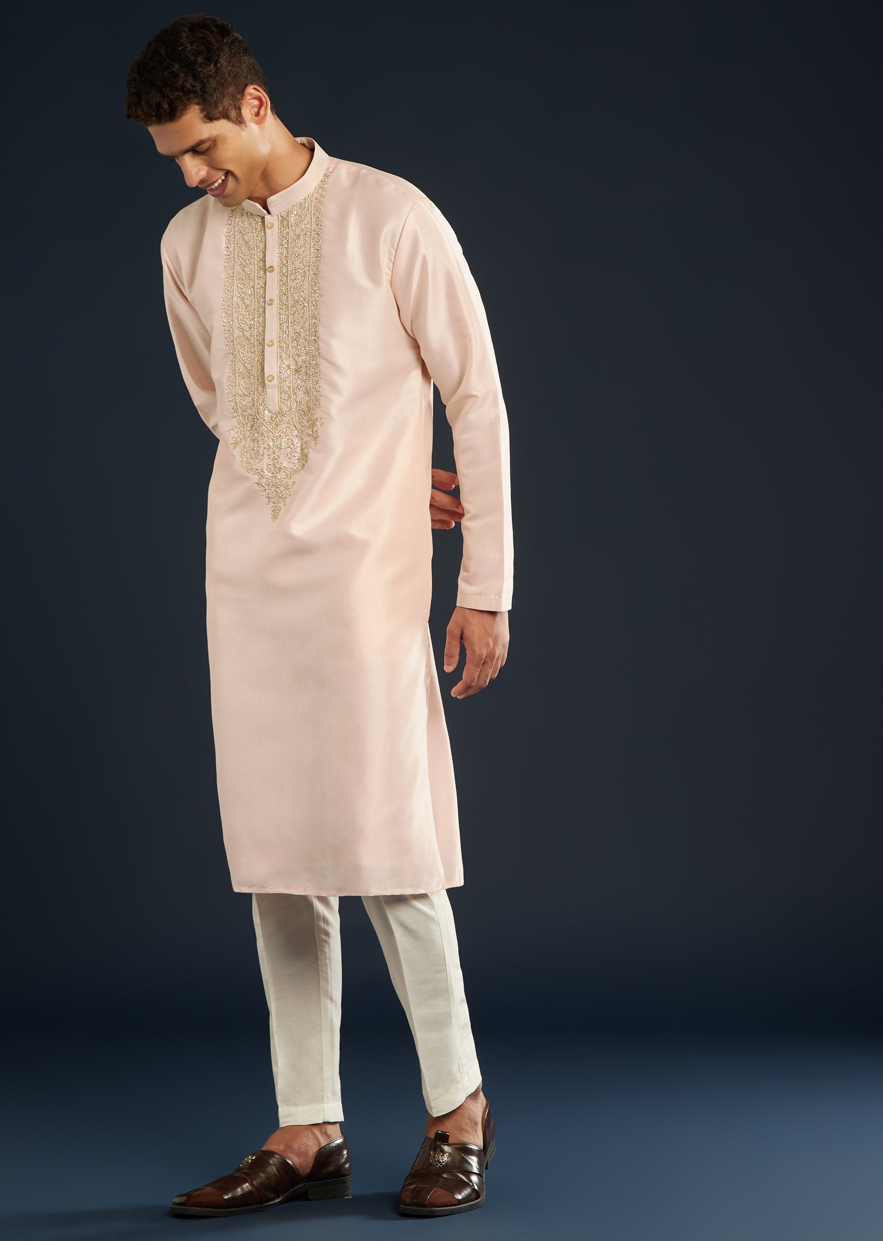 Baby Pink Silk Kurta Set with Resham Thread Accents