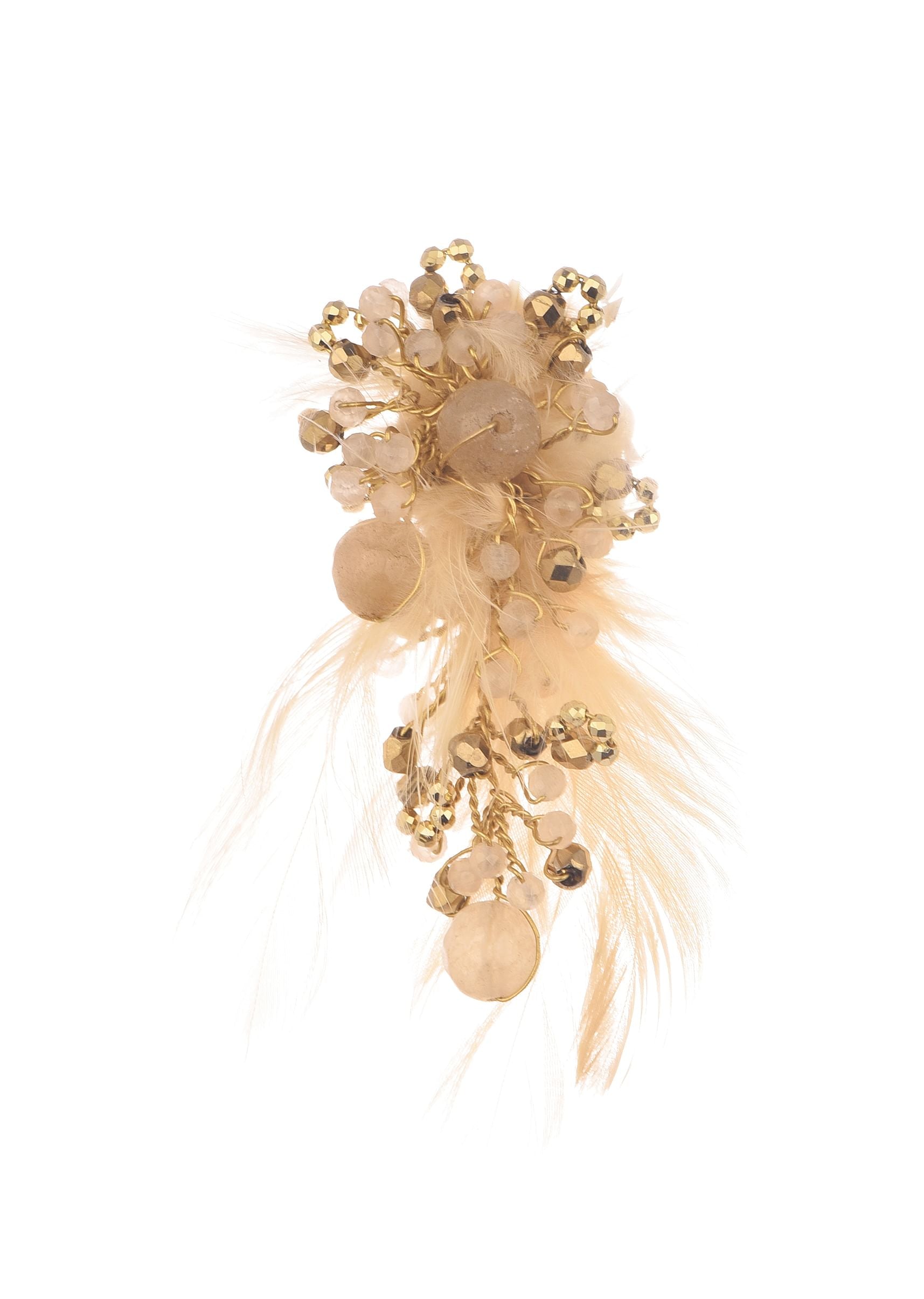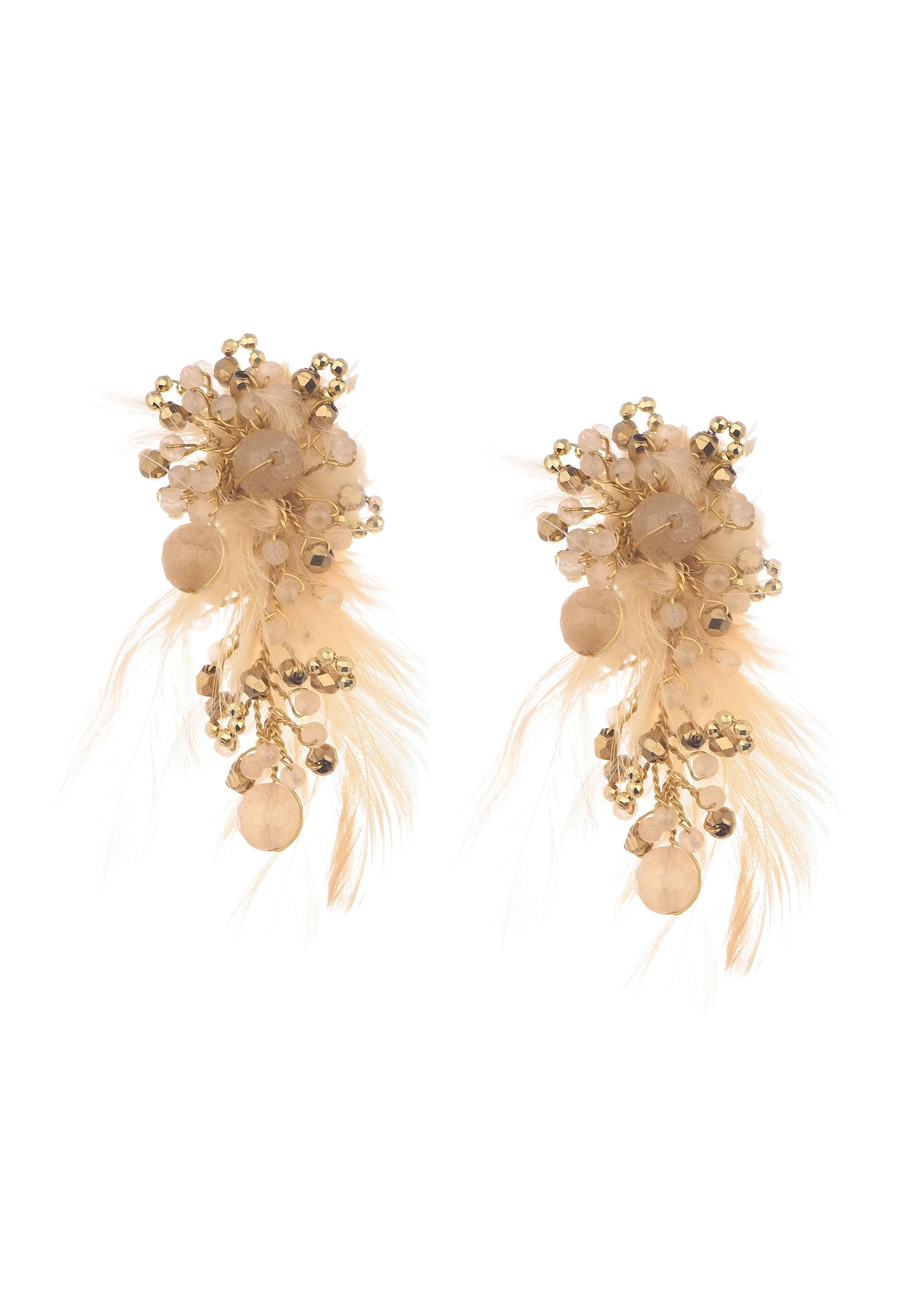 Beige And Gold Handcrafted Stud Earrings In Mix Metal