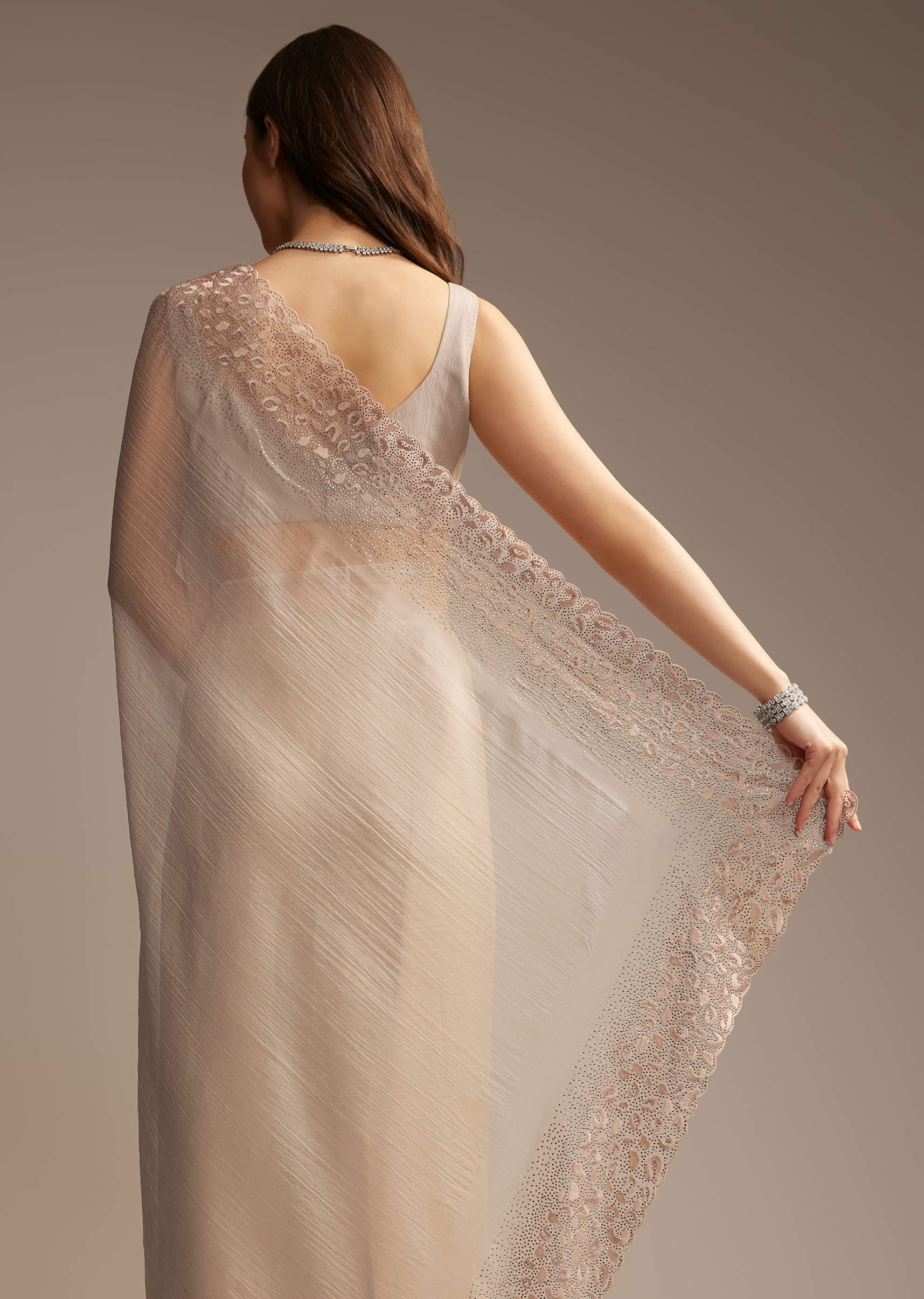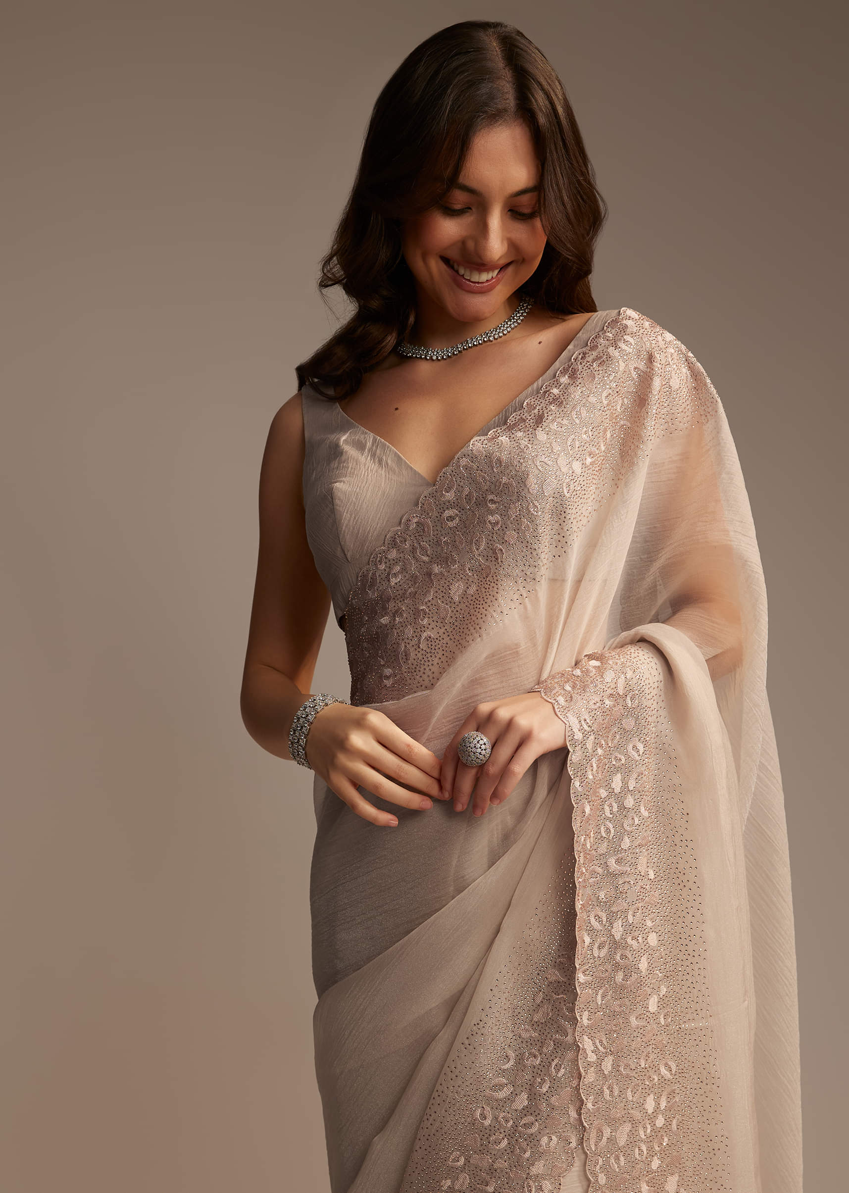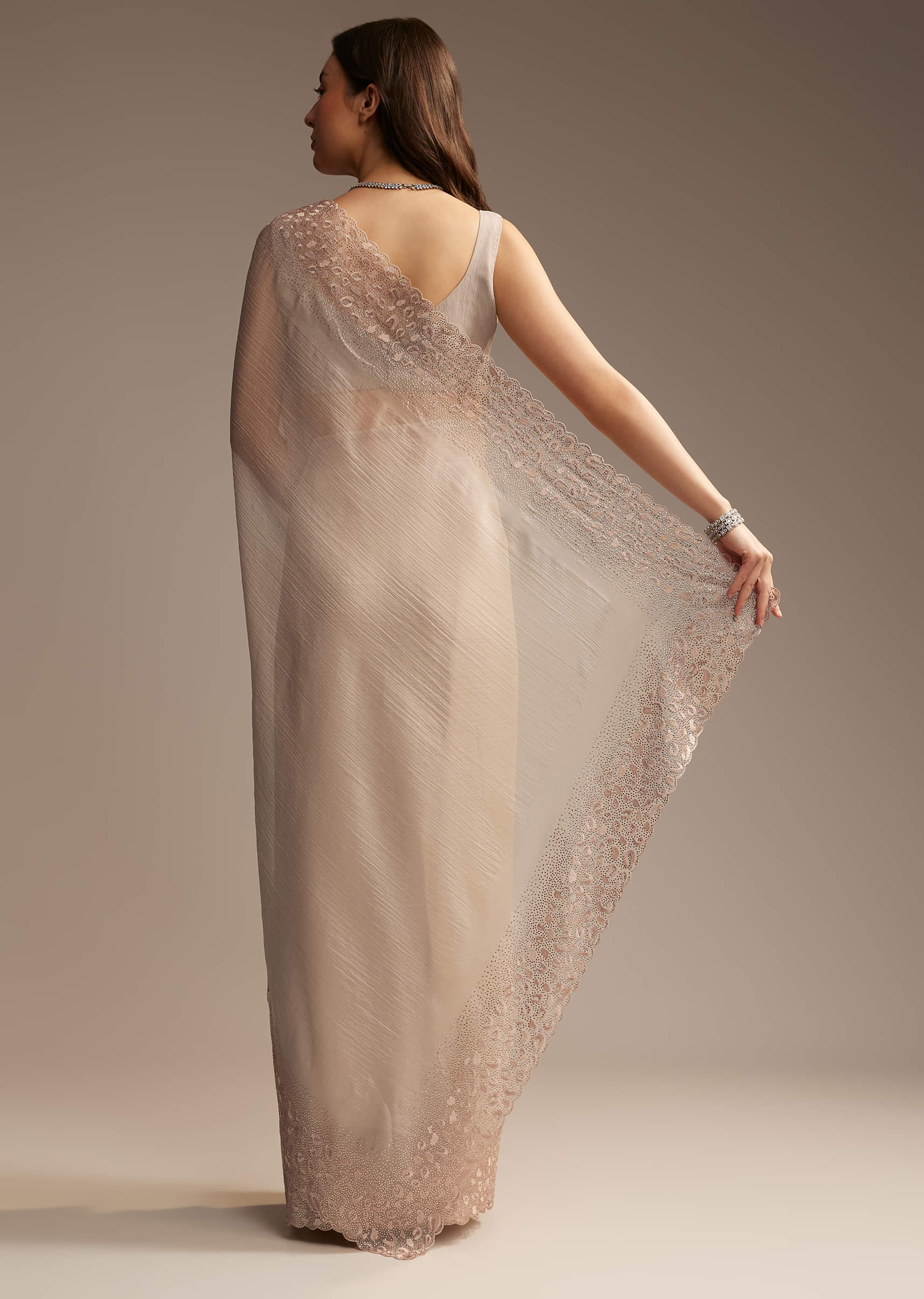 Beige Chiffon Embellished Saree with Resham Cutwork