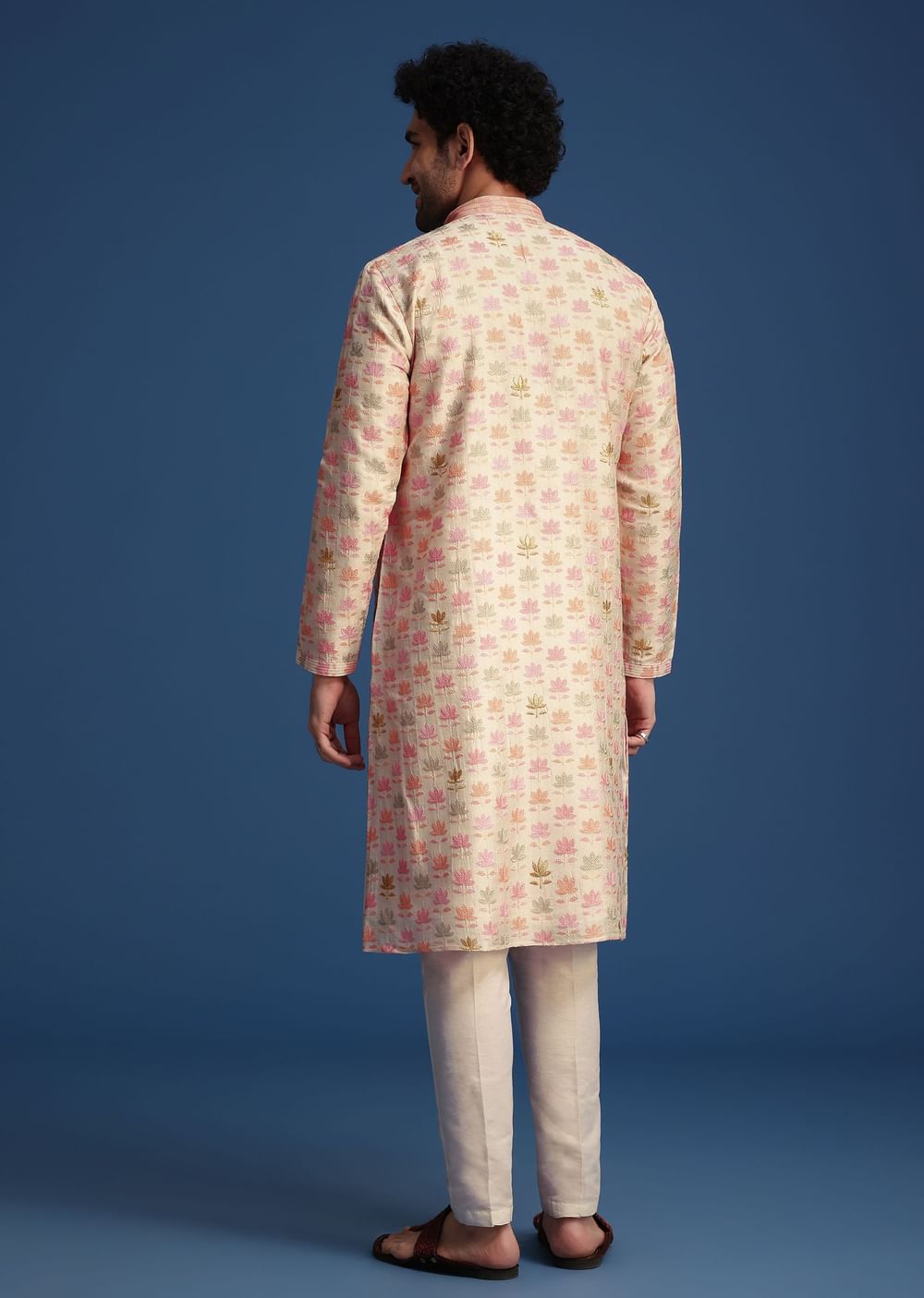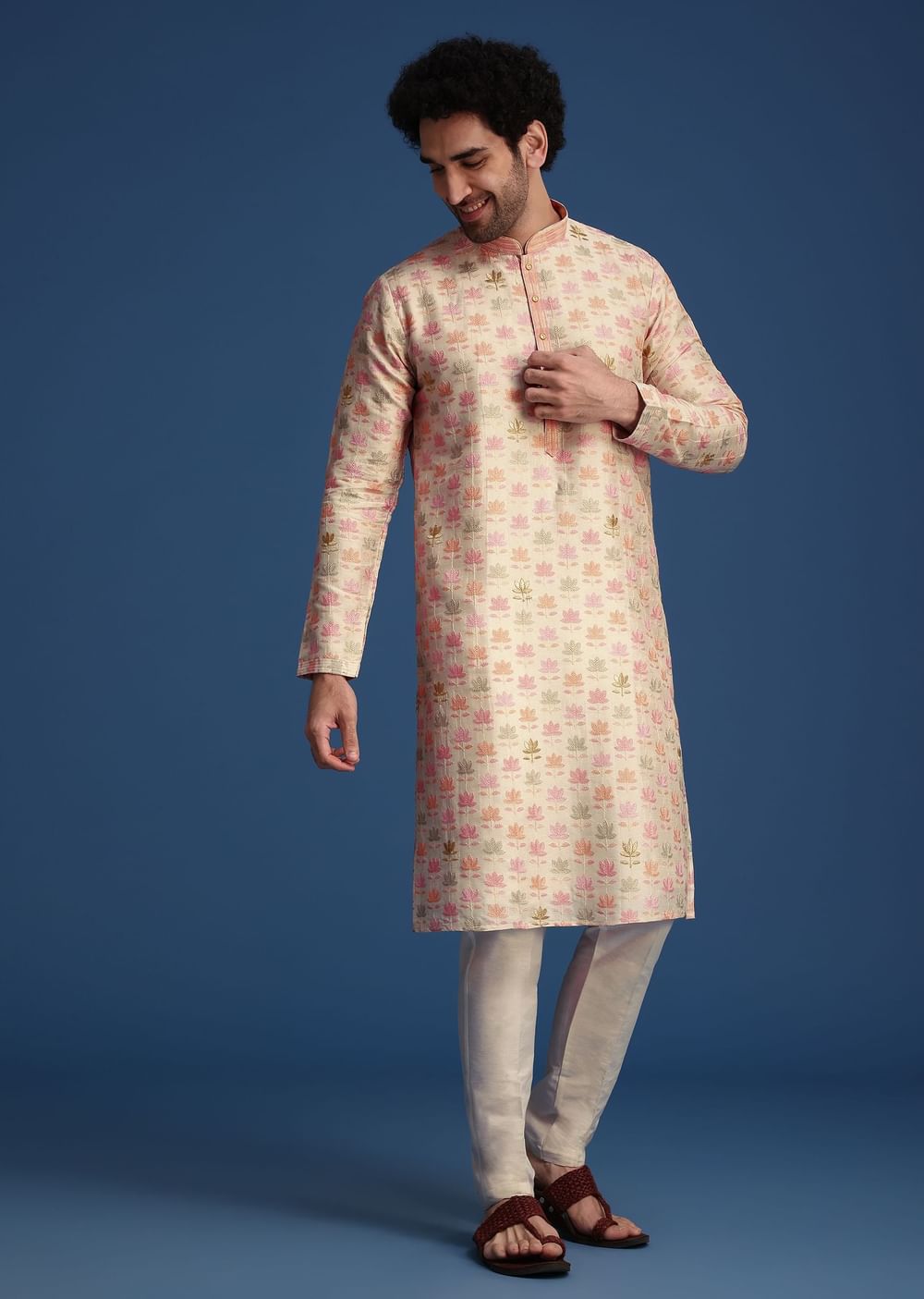 This beige kurta set features a subtle floral print perfect for daytime celebrations. The lightweight fabric ensures comfort with an understated charm. Its versatile design makes it suitable for both casual and formal gatherings. Pair with neutraltoned footwear for an effortless look. Awarded as the Most Trusted Brand, we're delivering styles you love, just as promised.