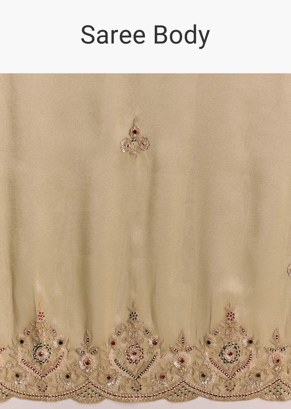 Beige Gold Tissue Embroidered Saree With Zardosi And Stone Work