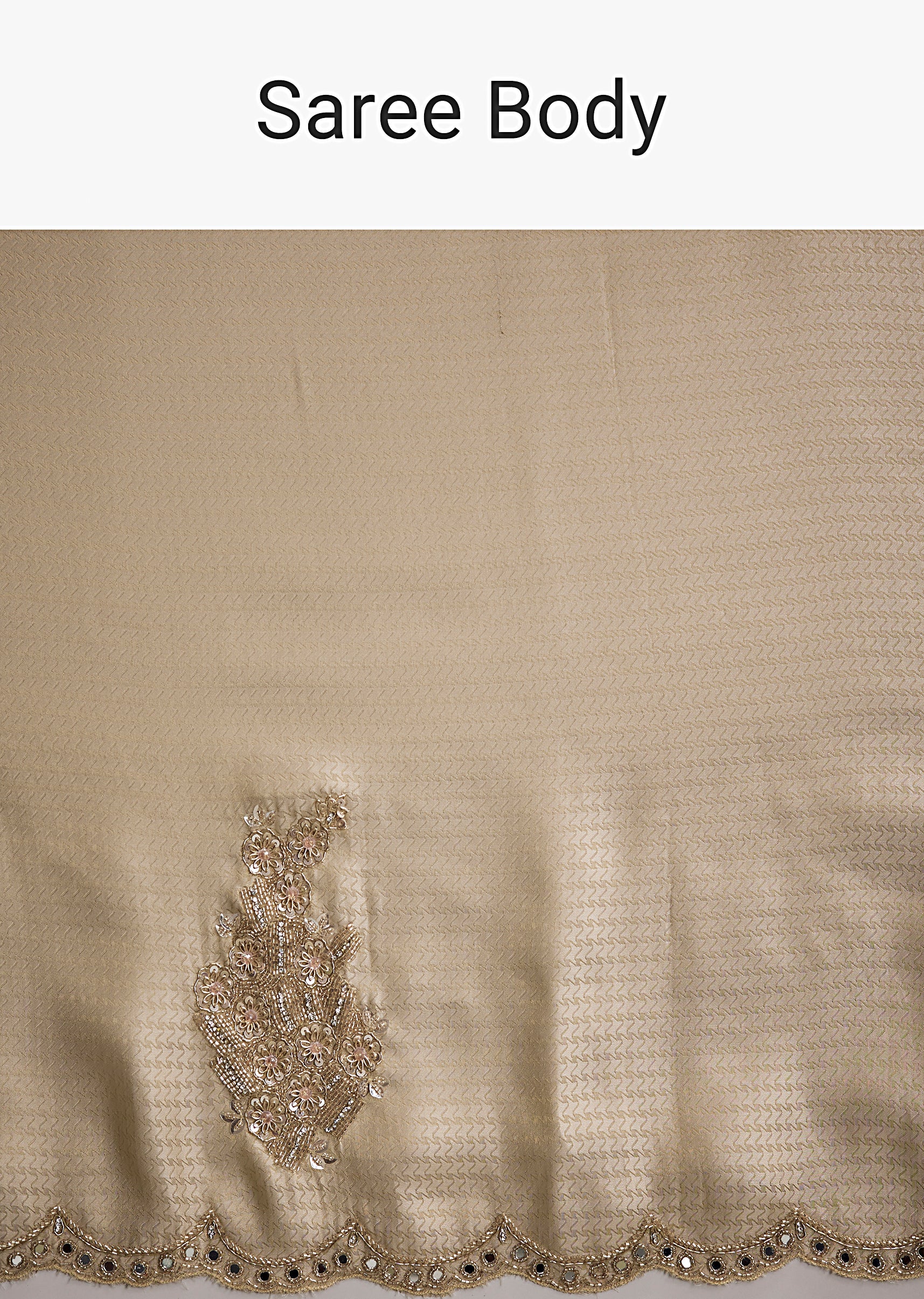 Beige Jacquard Saree With Zardosi And Mirror Embroidery