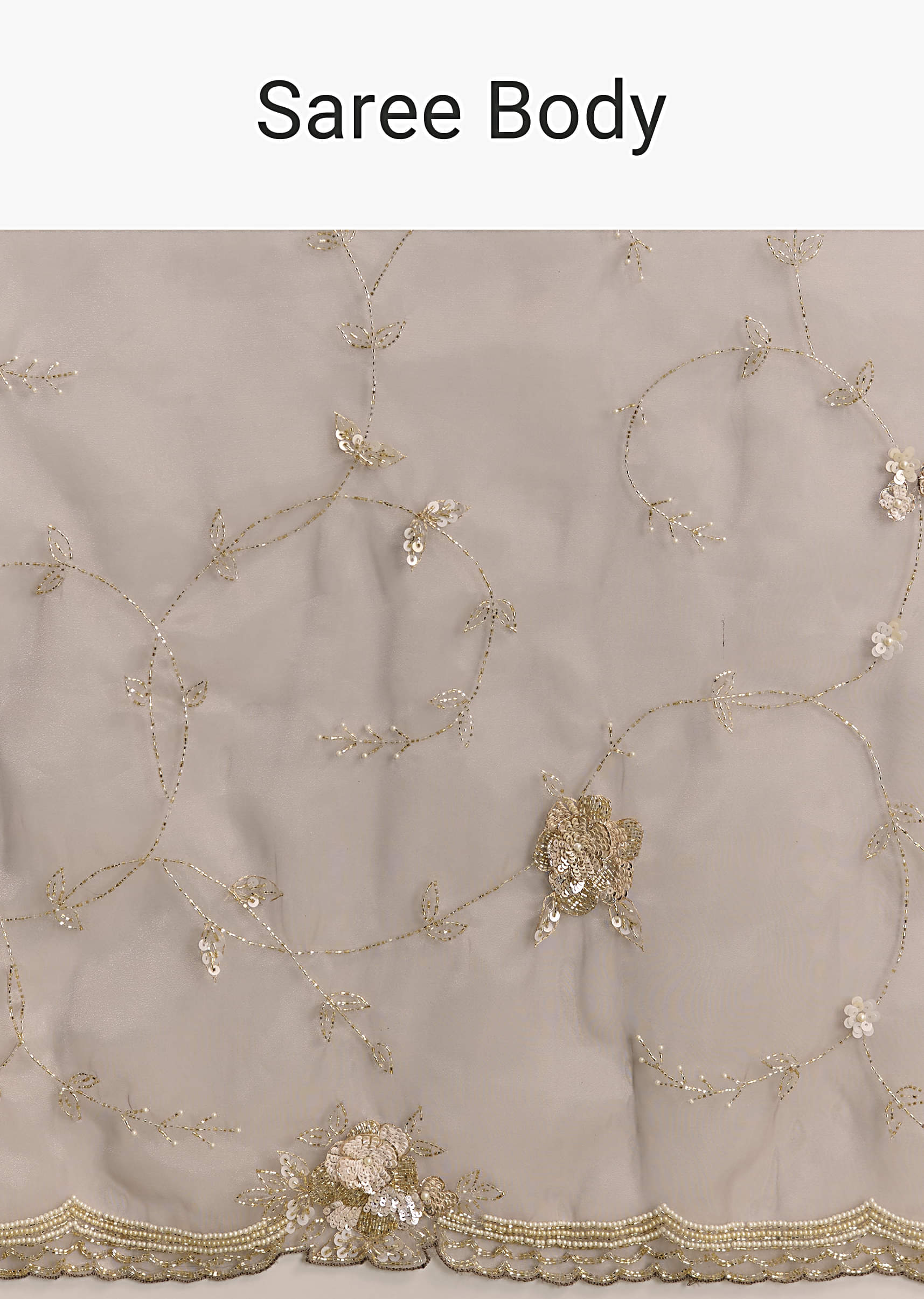 Beige Organza Embroidered Saree With Moti And Cutdana Work