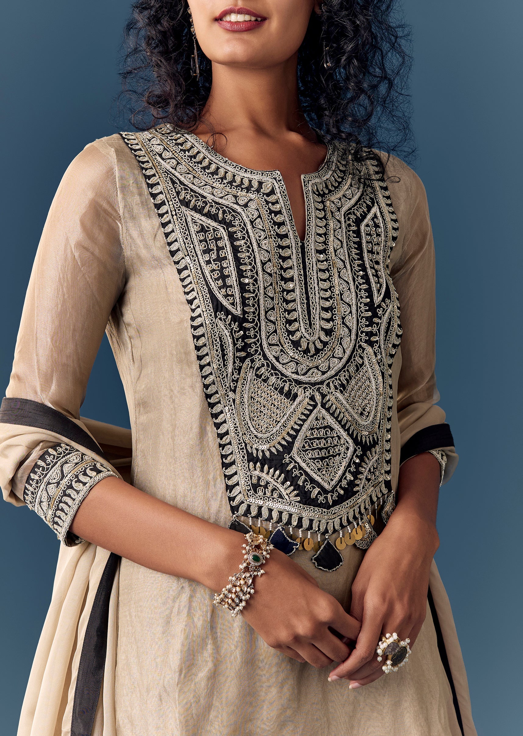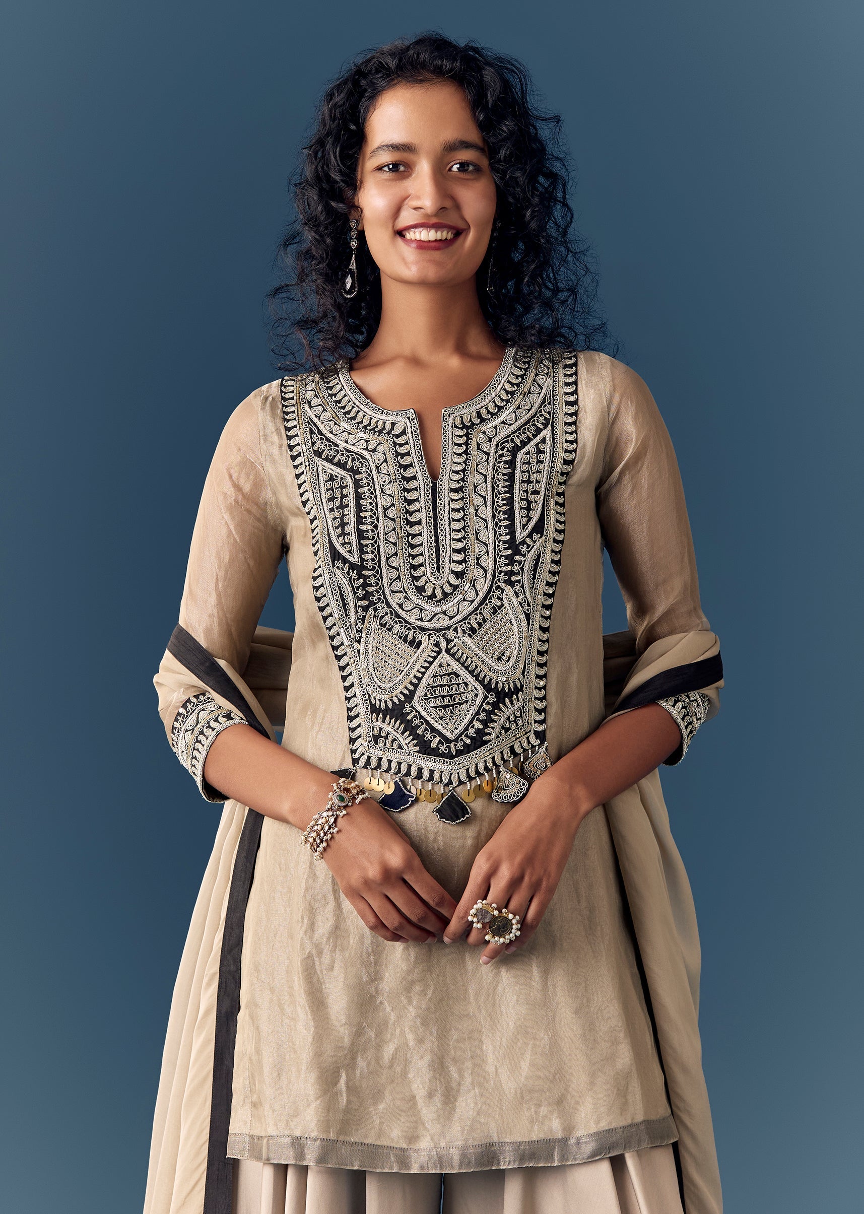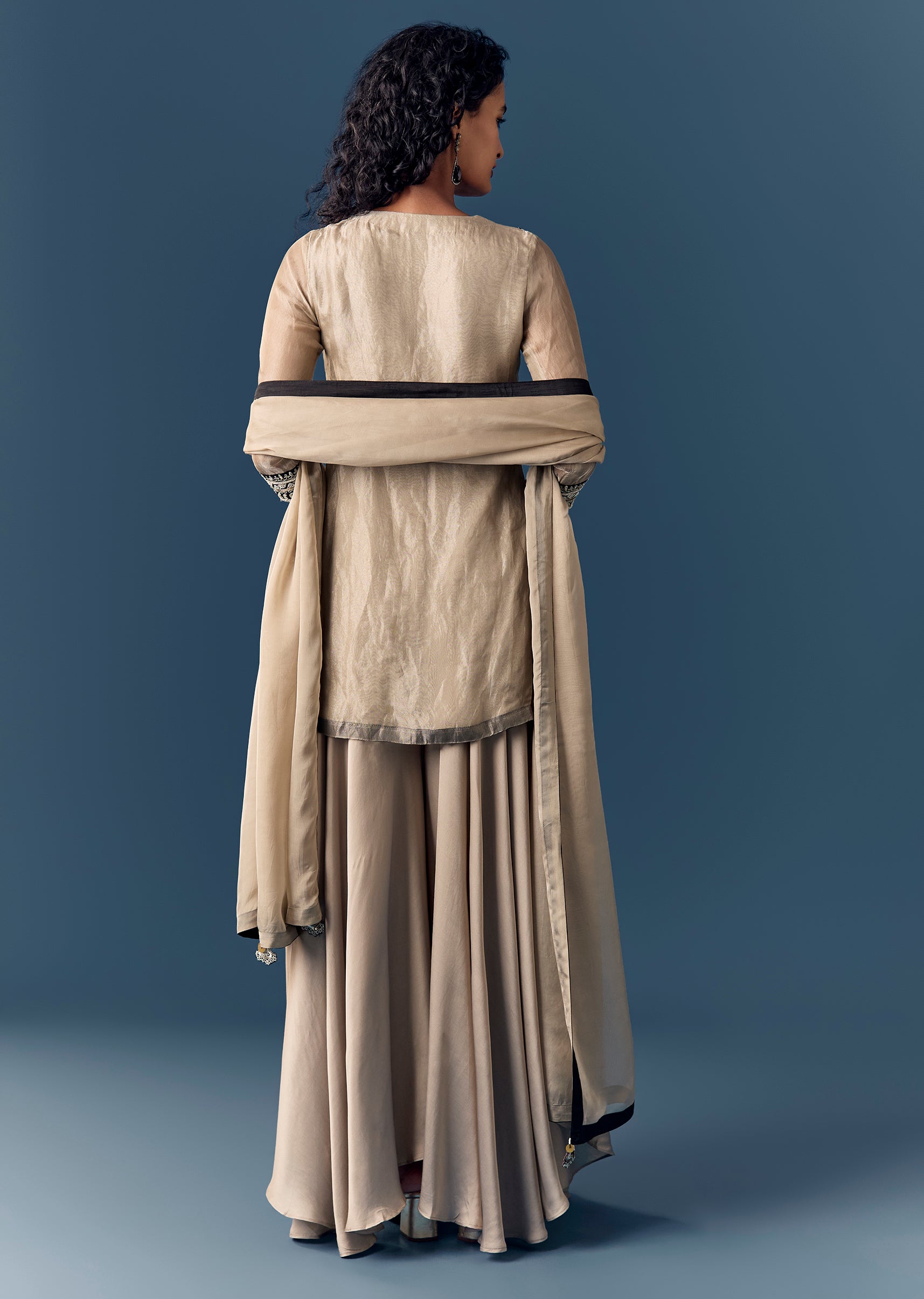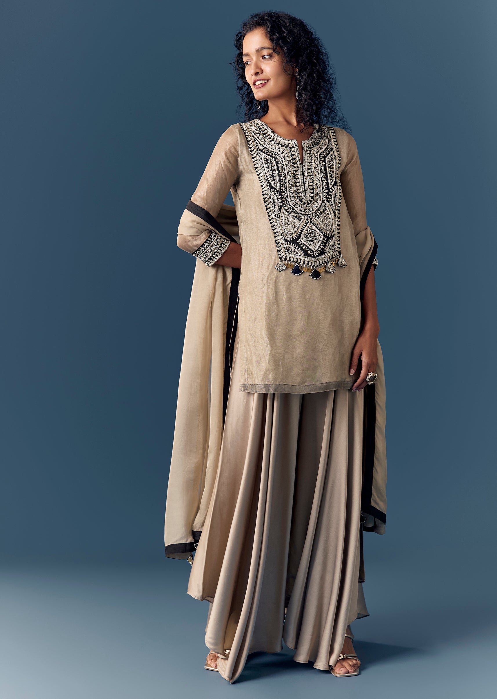 Beige Silver Zardosi Kurta Palazzo Set With Dupatta