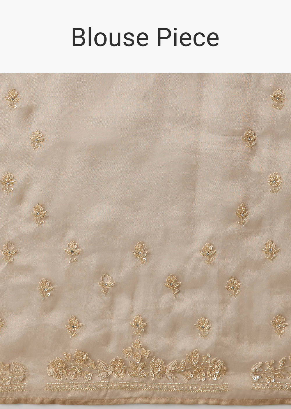 Beige Tissue Saree With Embroidered Brocade Blouse