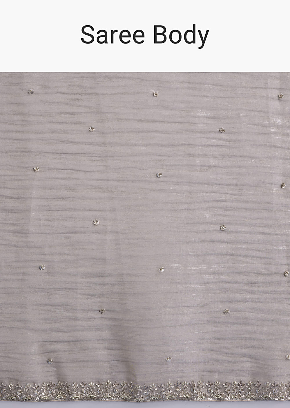 Elegant and light on the skin, this beige tissue saree offers a soft glow that photographs beautifully. Tiny sequin buttis and a worked border in cutdana and sequins bring hand-finished... More Product Details