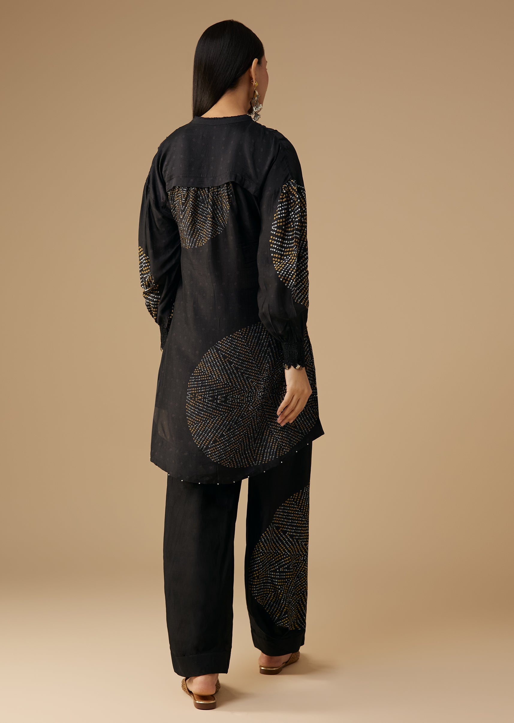 Black Bandhani Printed Silk Kurta Pant Set