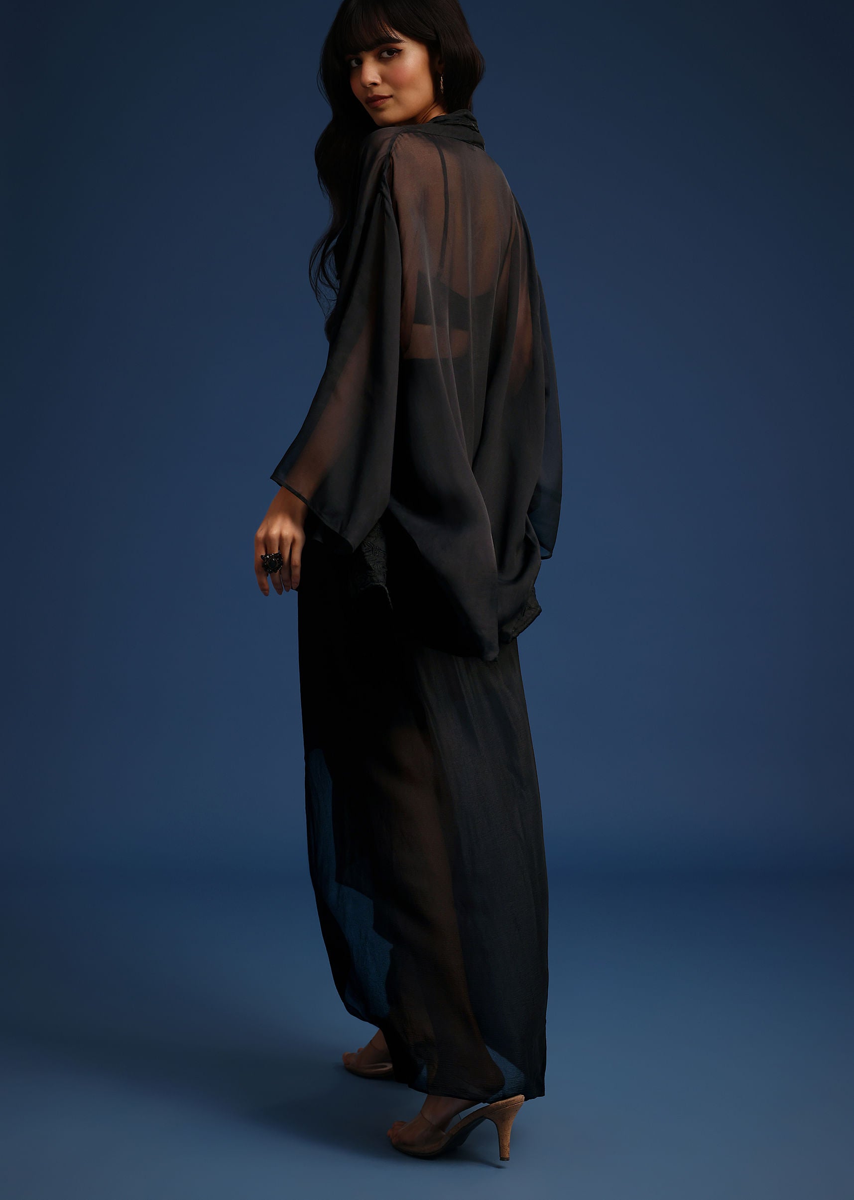 Black Chiffon Asymmetrical Skirt And Jacket Set