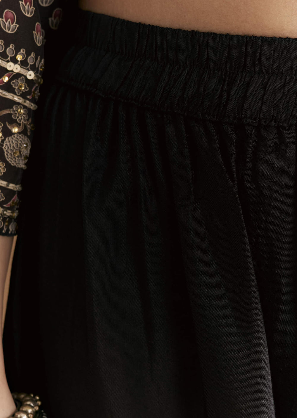 Built for all-day plans, this black crepe kurta set keeps the silhouette clean and the drape light. Indie print adds character, while precise stone work brings a focused sparkle that... More Product Details