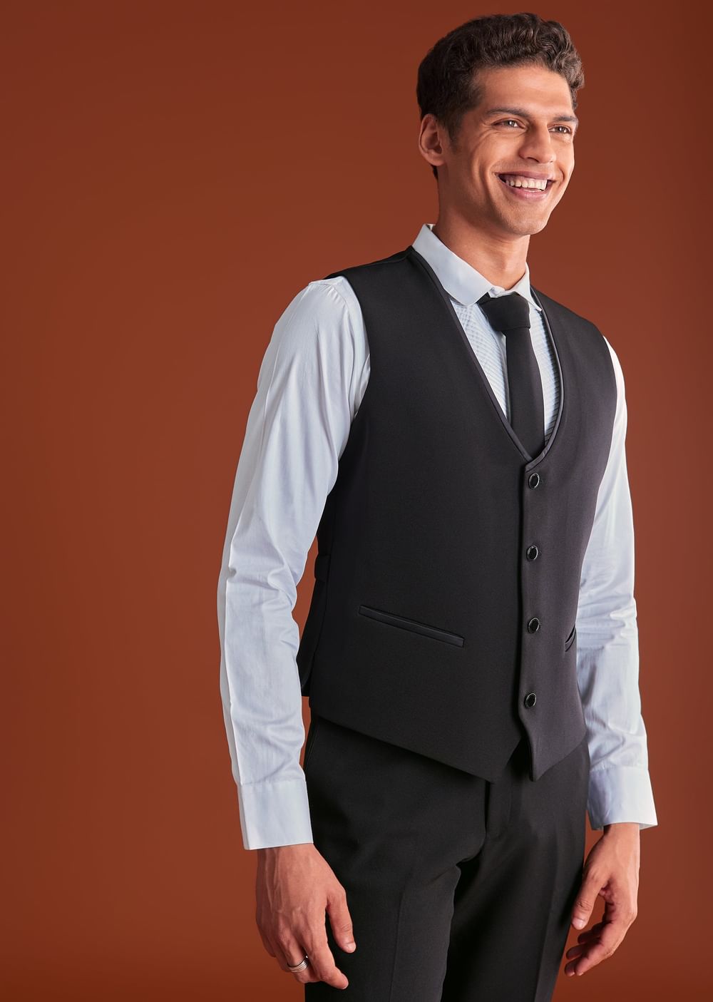 Fit Tips:Ensure a tailored waistcoat and slim trousers for polished structure.