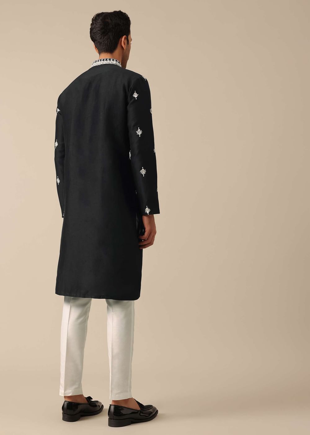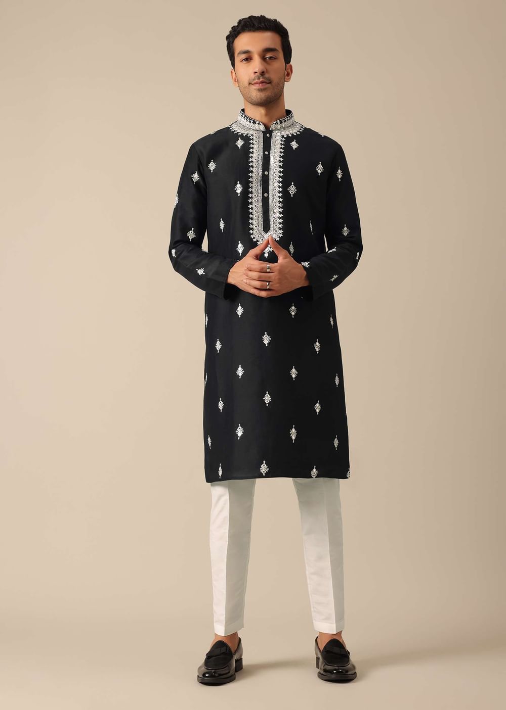 Gain everyone's attention by stepping out in this alluring kurta set. Crafted from plush silk, it is beautified with stunning resham work. The mandarin collar and full sleeves add to its design. Paired with pants, this outfit will be a festive delight. Awarded As The Most Trusted Brand We'Re Delivering Styles You Love Just As Promised.