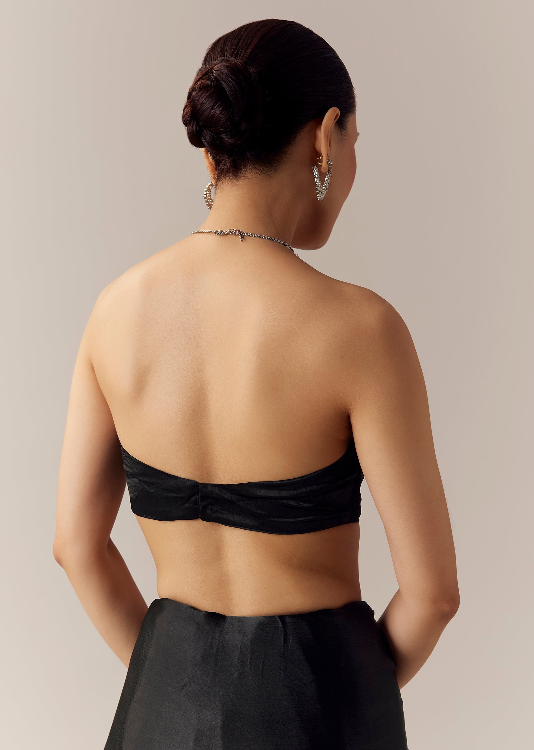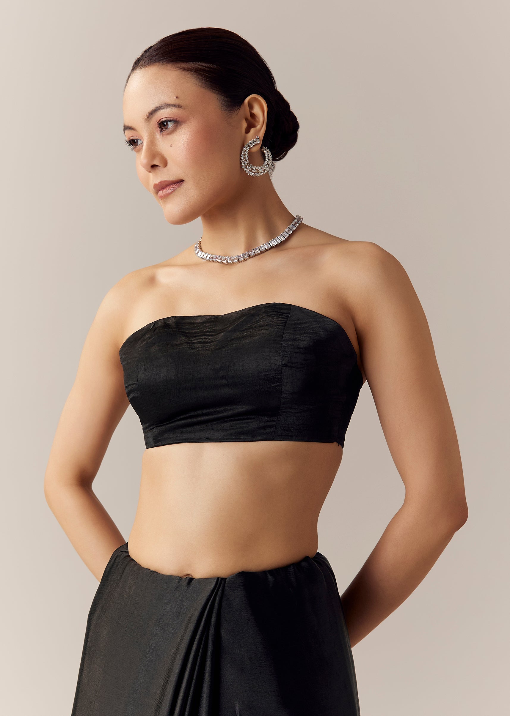Pair it with diamond jewelry, bold kohl eyes, and a sleek hairstyle to highlight its rich black elegance.