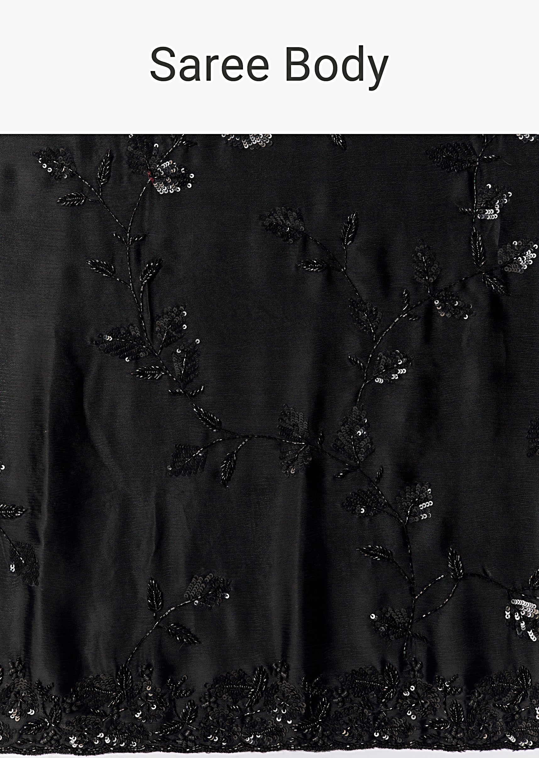 Black Floral Motif Cutdana Embellished Saree with Unstitched Blouse
