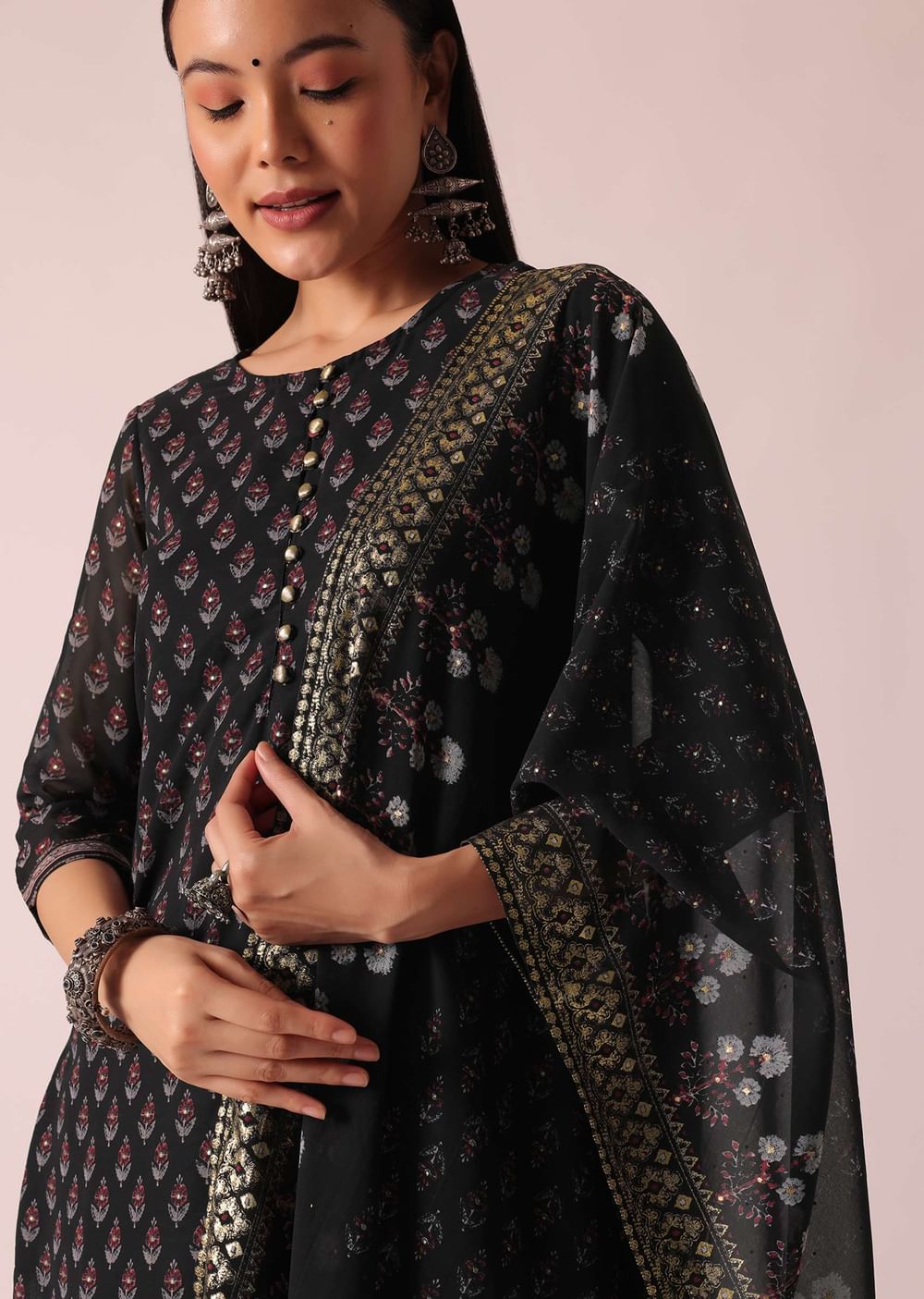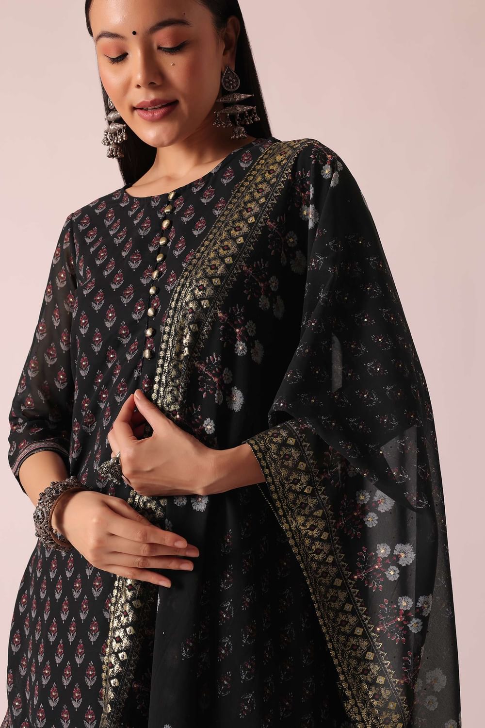 Presenting a foil print kurta set that allows you to showcase your unique sense of style. Decked with floral motifs the kurta features delicate goldtone show buttons. Crafted using premiumquality... More Product Details