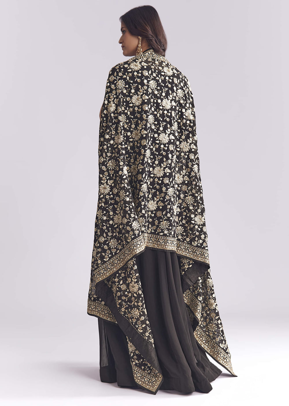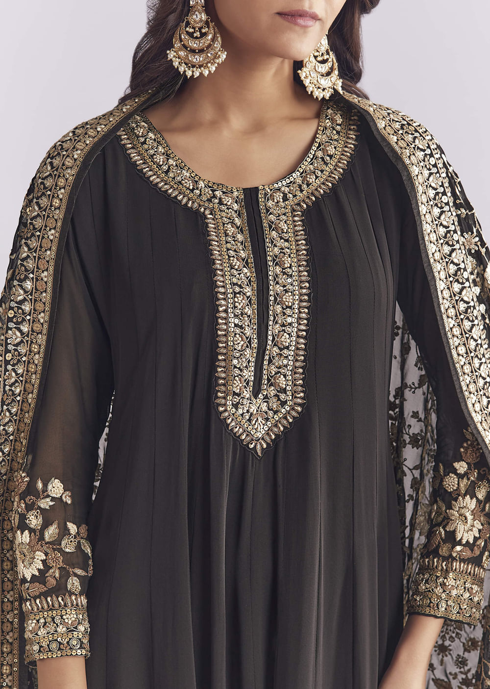 Black Georgette Anarkali Suit With Thread And Sequins Work