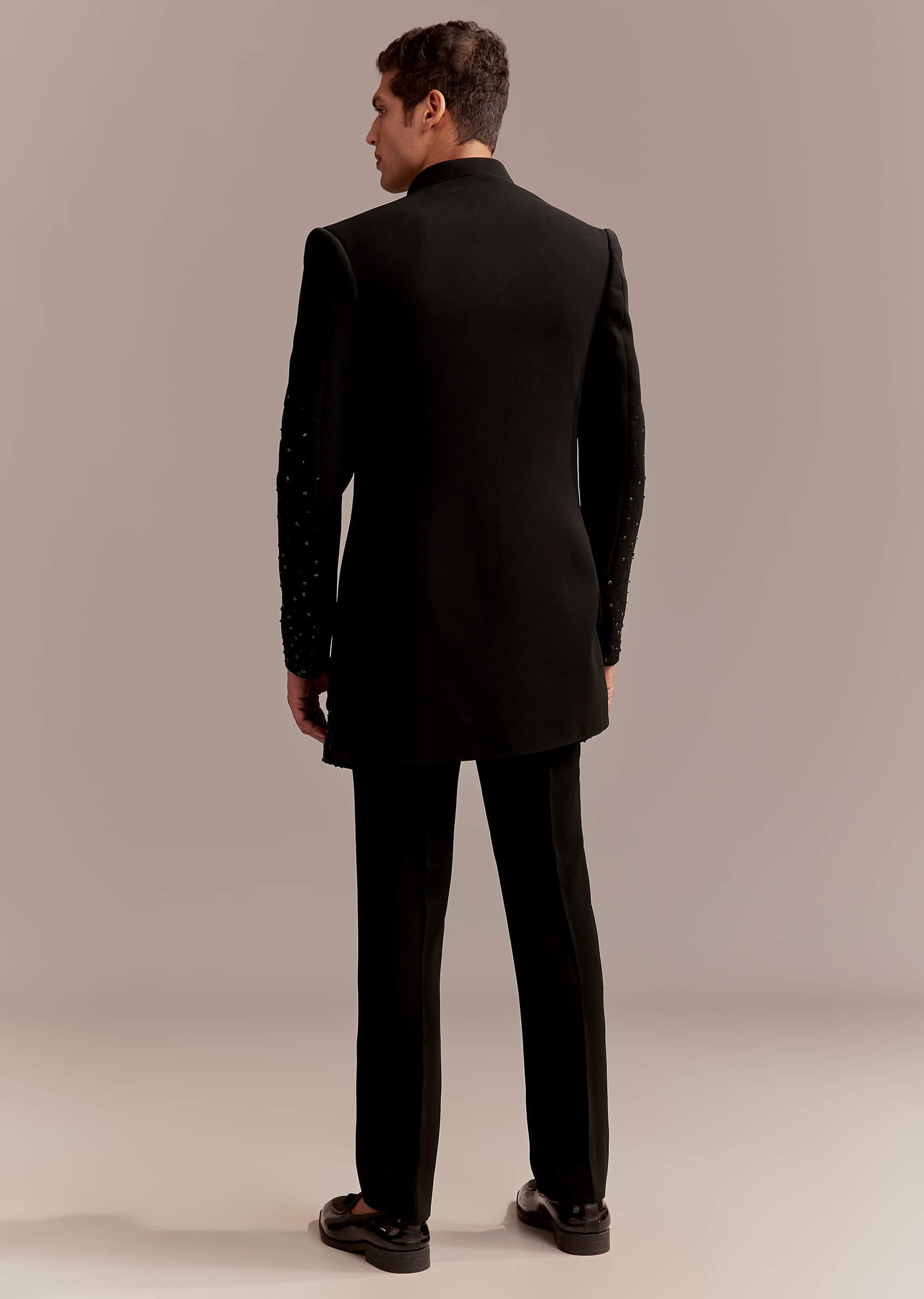 Black Indo Western Set For Men With Zardosi Dragon Motif