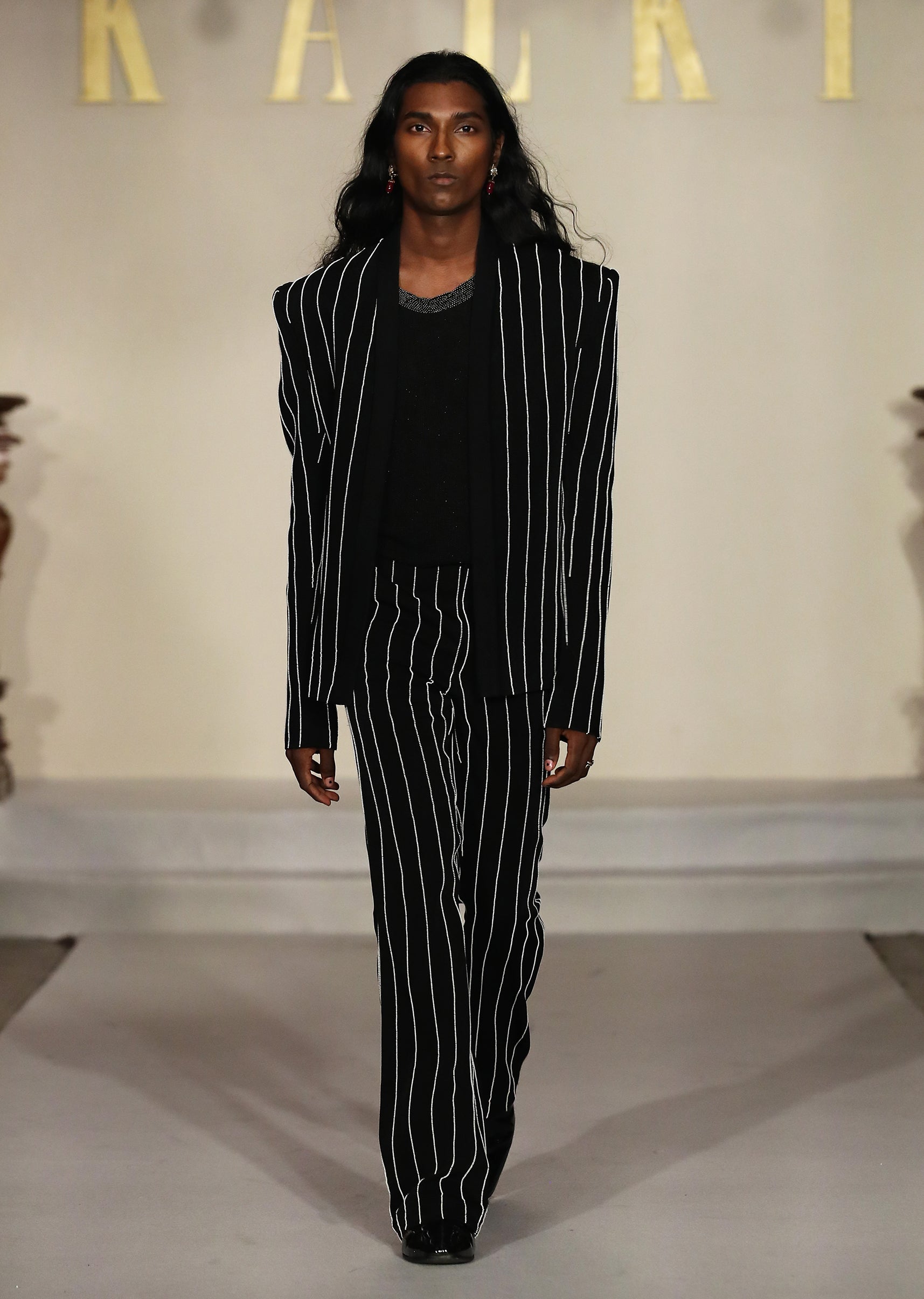Patent derbies, a minimal lapel pin and a sharp side part keep the lines strong.