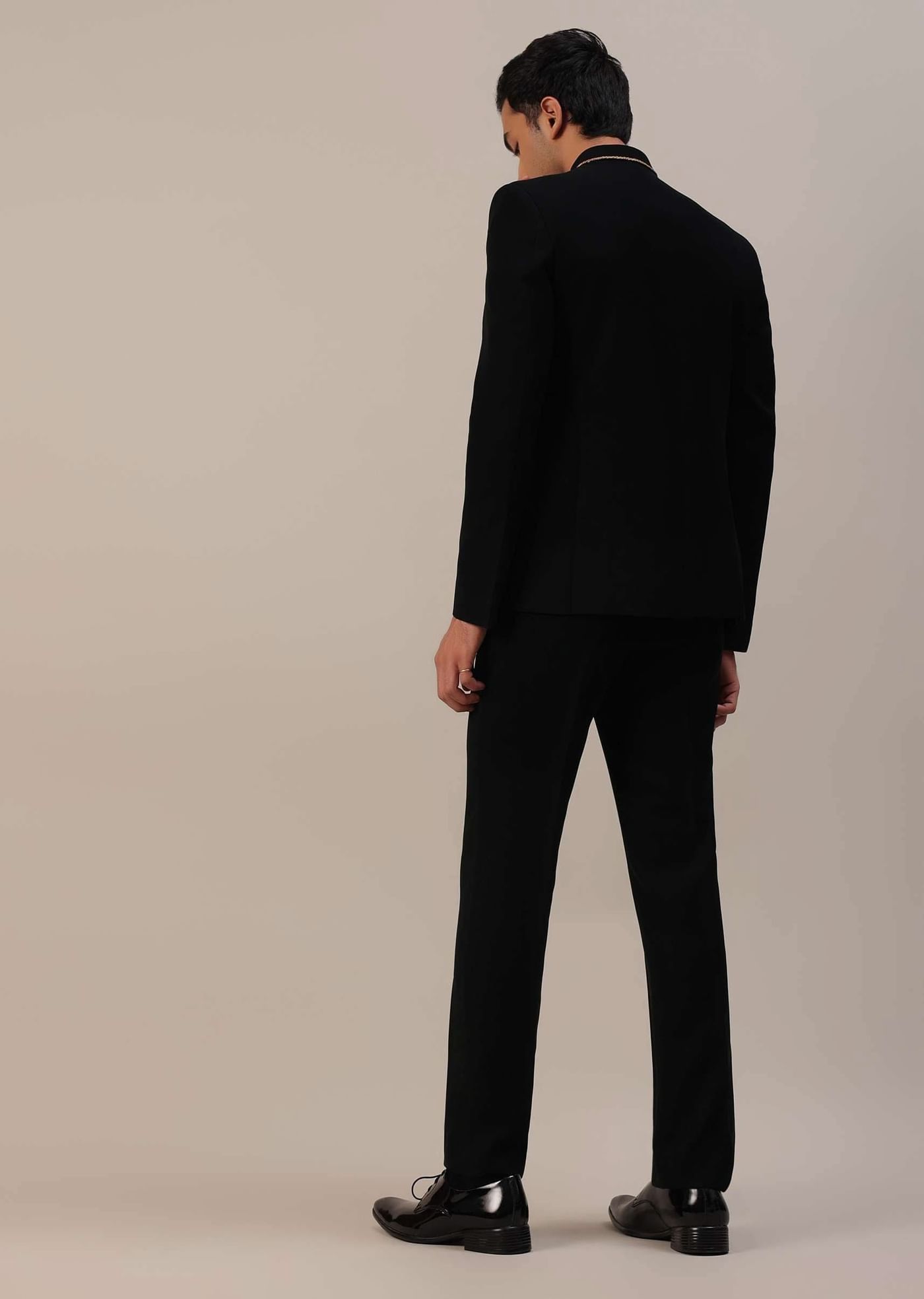 Black Indowestern In Suiting Fabric With Detailed Threadwork