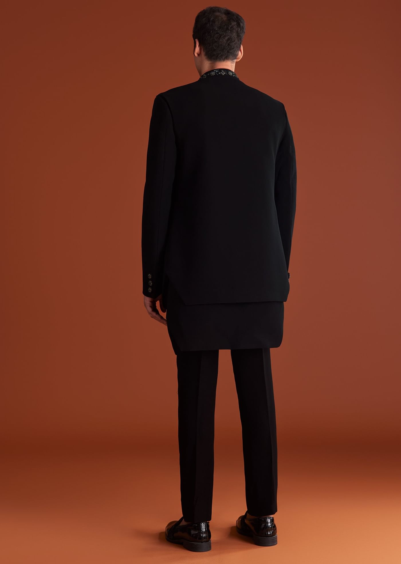Black Indowestern Jacket Set With Zari And Pearl Work