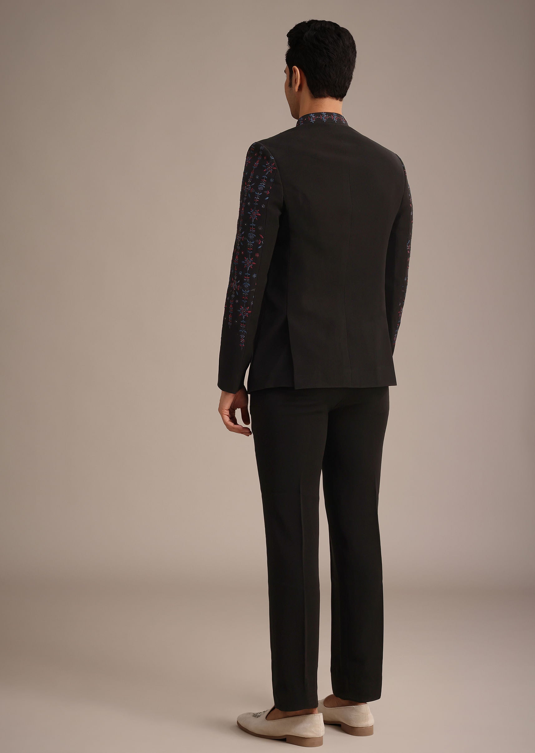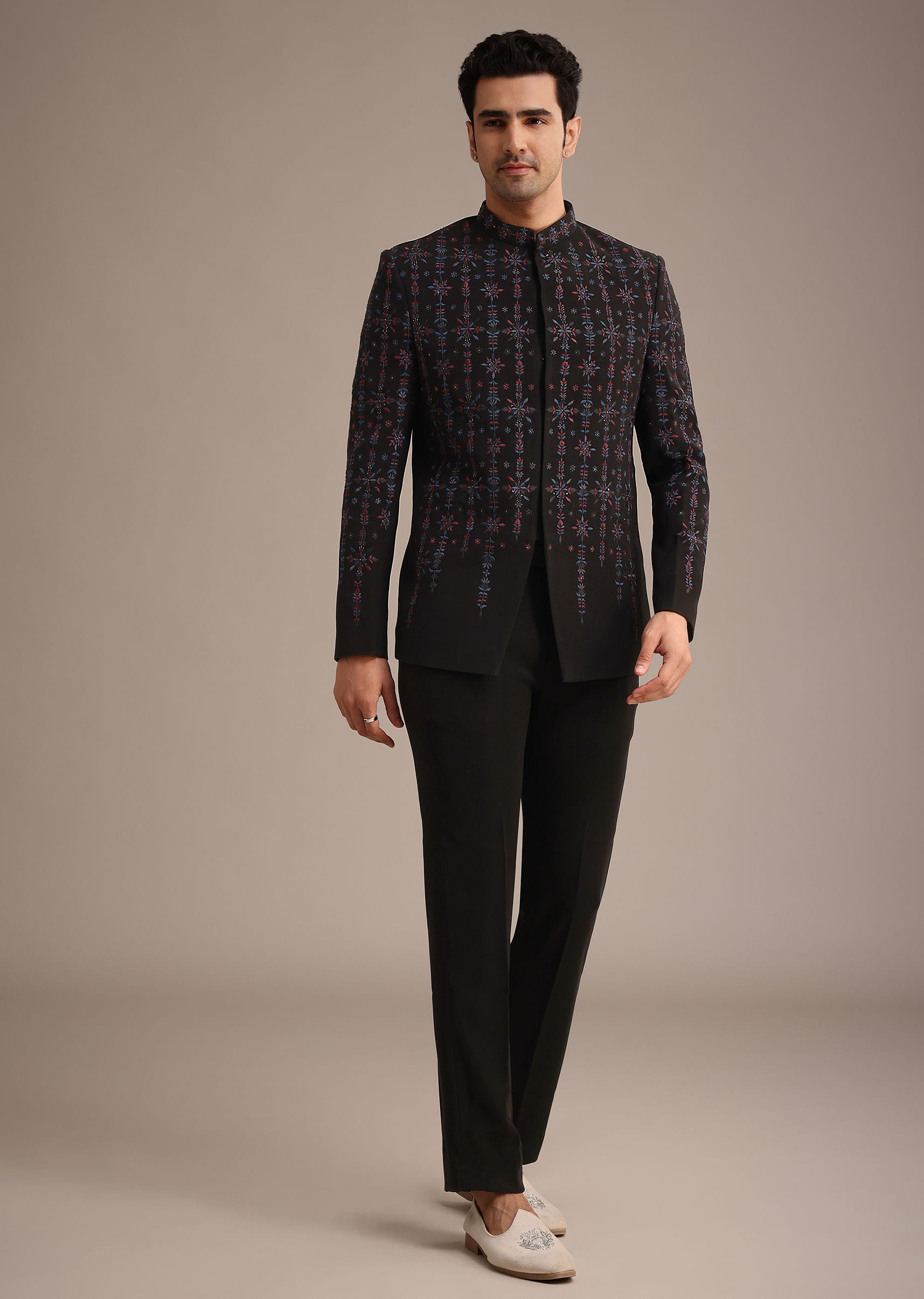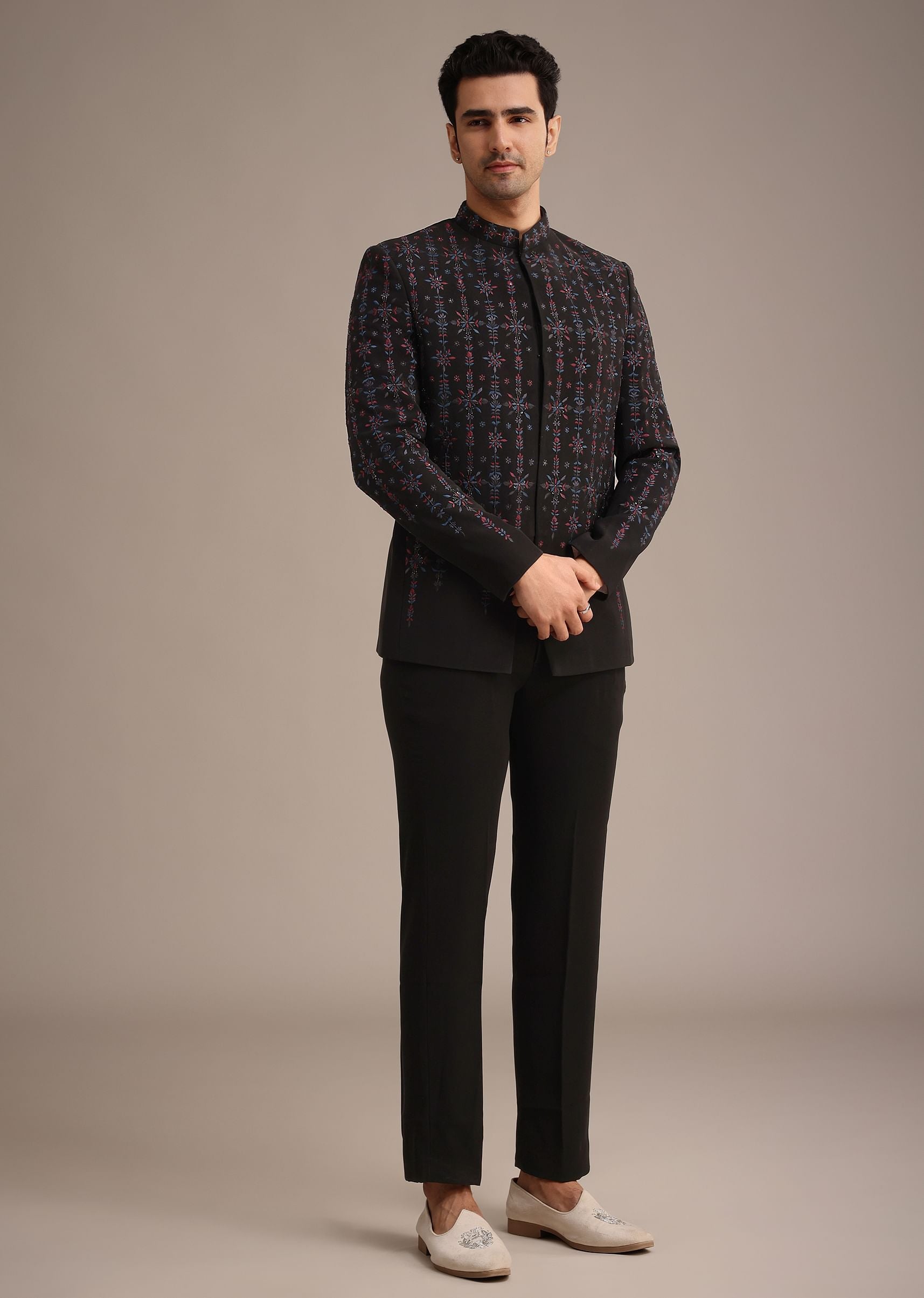Dance through celebratory season in this striking black indowestern set that will ensure you command attention. Tailored from a blend of premium fabrics it highlights a mandarin collar frontbuttons and full sleeves design. Enriched with thread work and accents of cutdana and salli it displays an array of multihued motifs. Completed with a kurta and coordinating bottoms this ensemble adds to your versatile collection. Awarded as the Most Trusted Brand, we're delivering styles you love, just as promised.