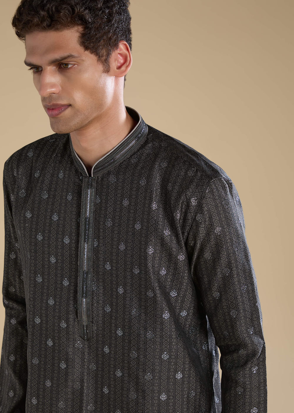 Fit Tips:Opt for a tailored fit through the shoulders and chest to complement the kurta’s structured silhouette and jacquard weave.
