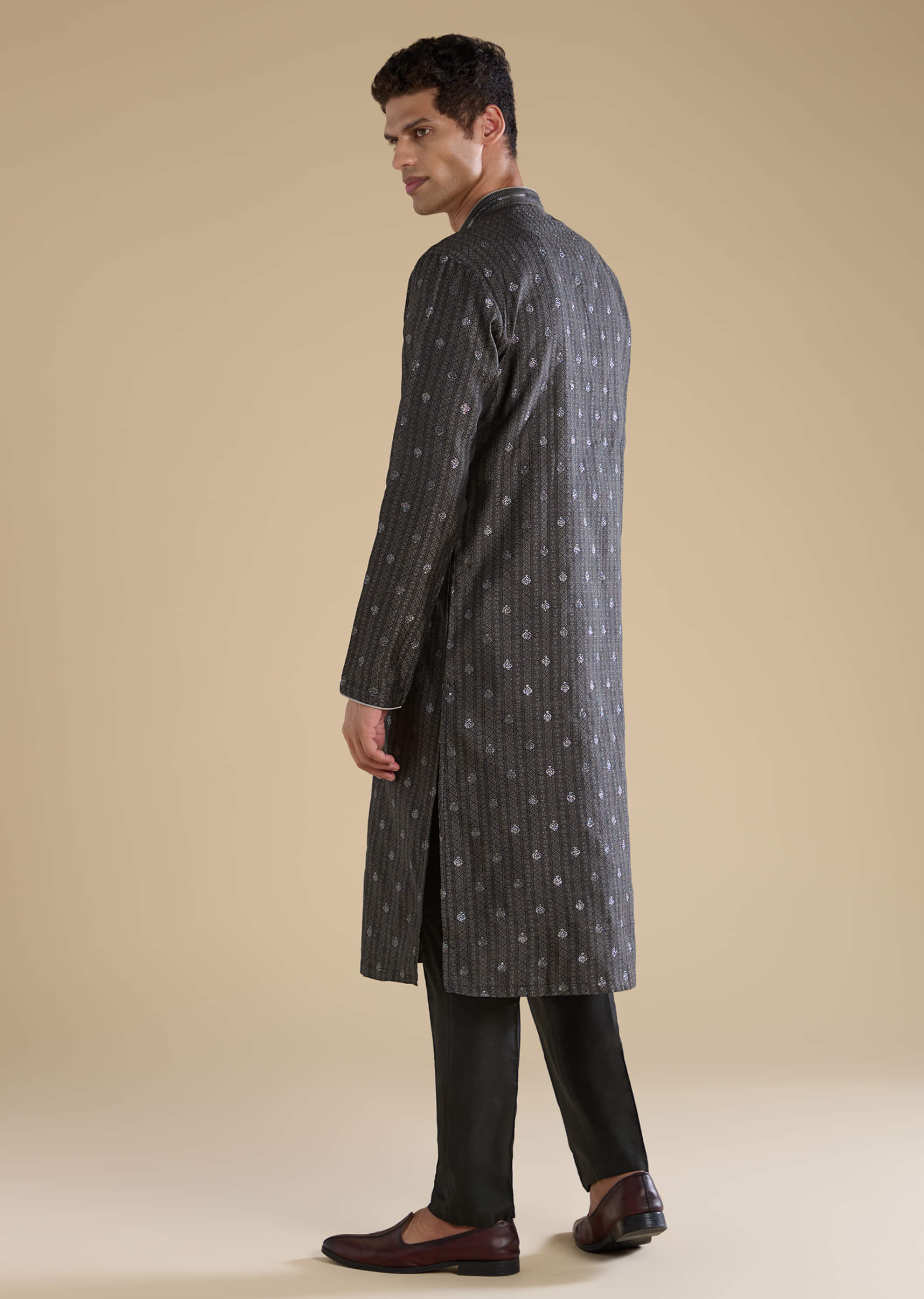 Pair with black or gold toned mojris and a sleek hairstyle for a sharp, regal look.