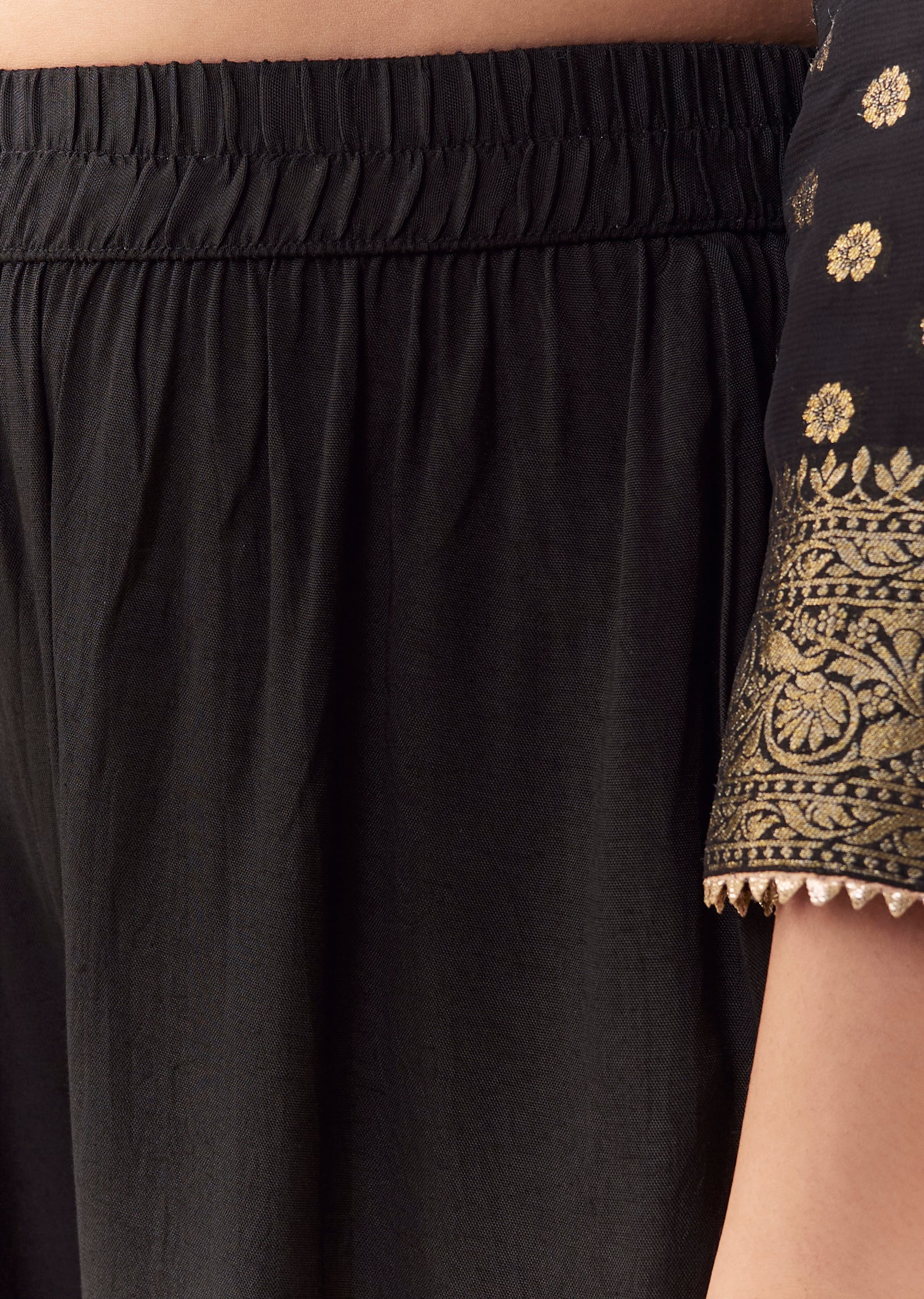 Black Jacquard Woven Gota Work Kurta Palazzo Set