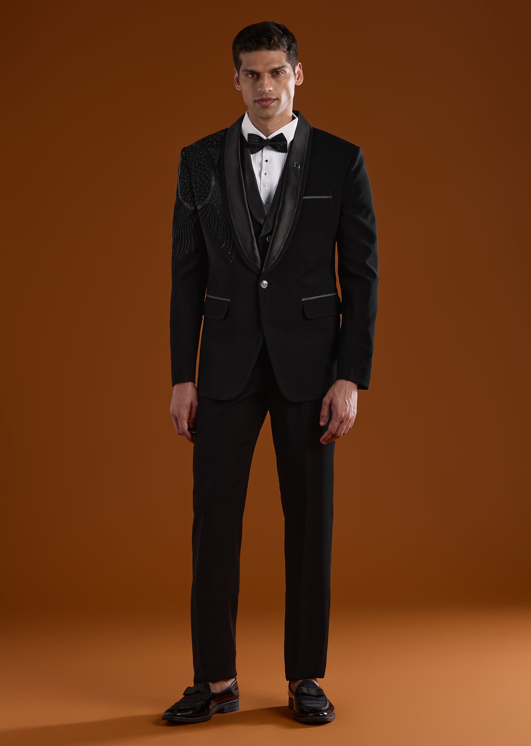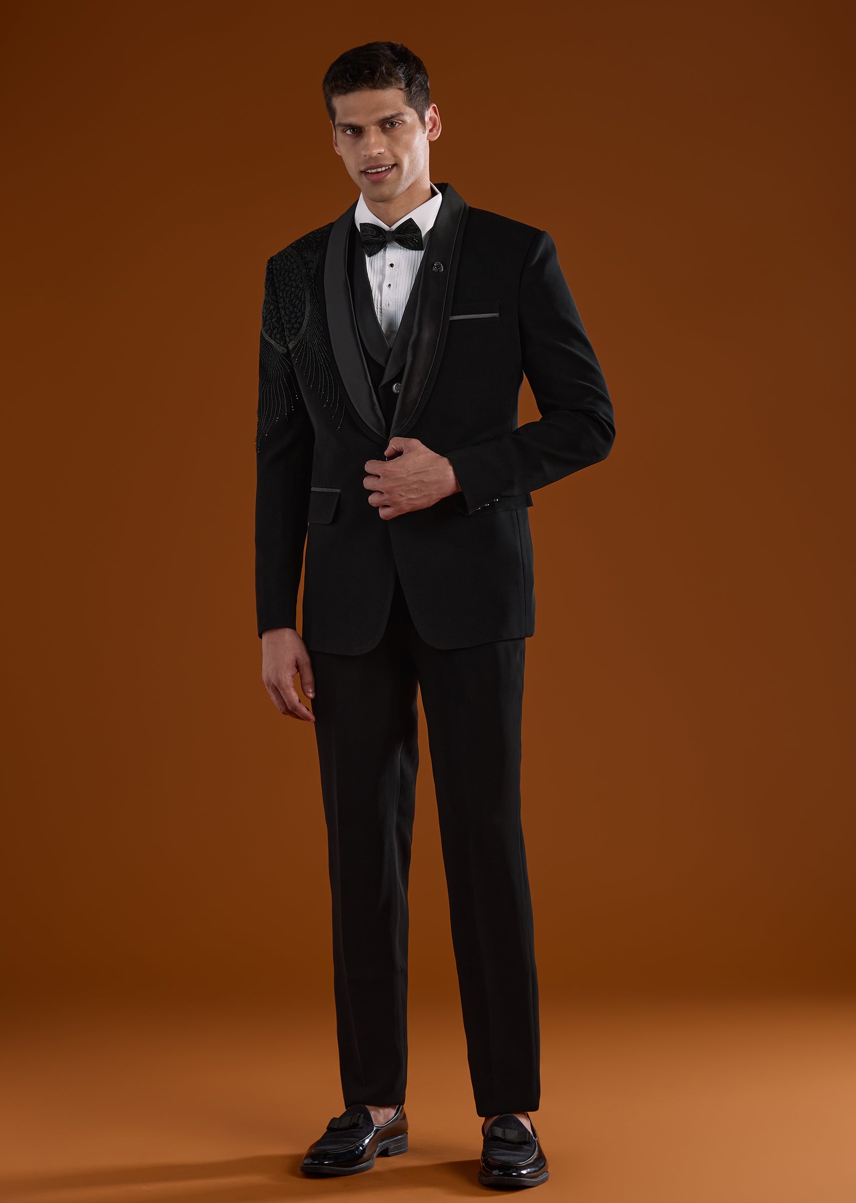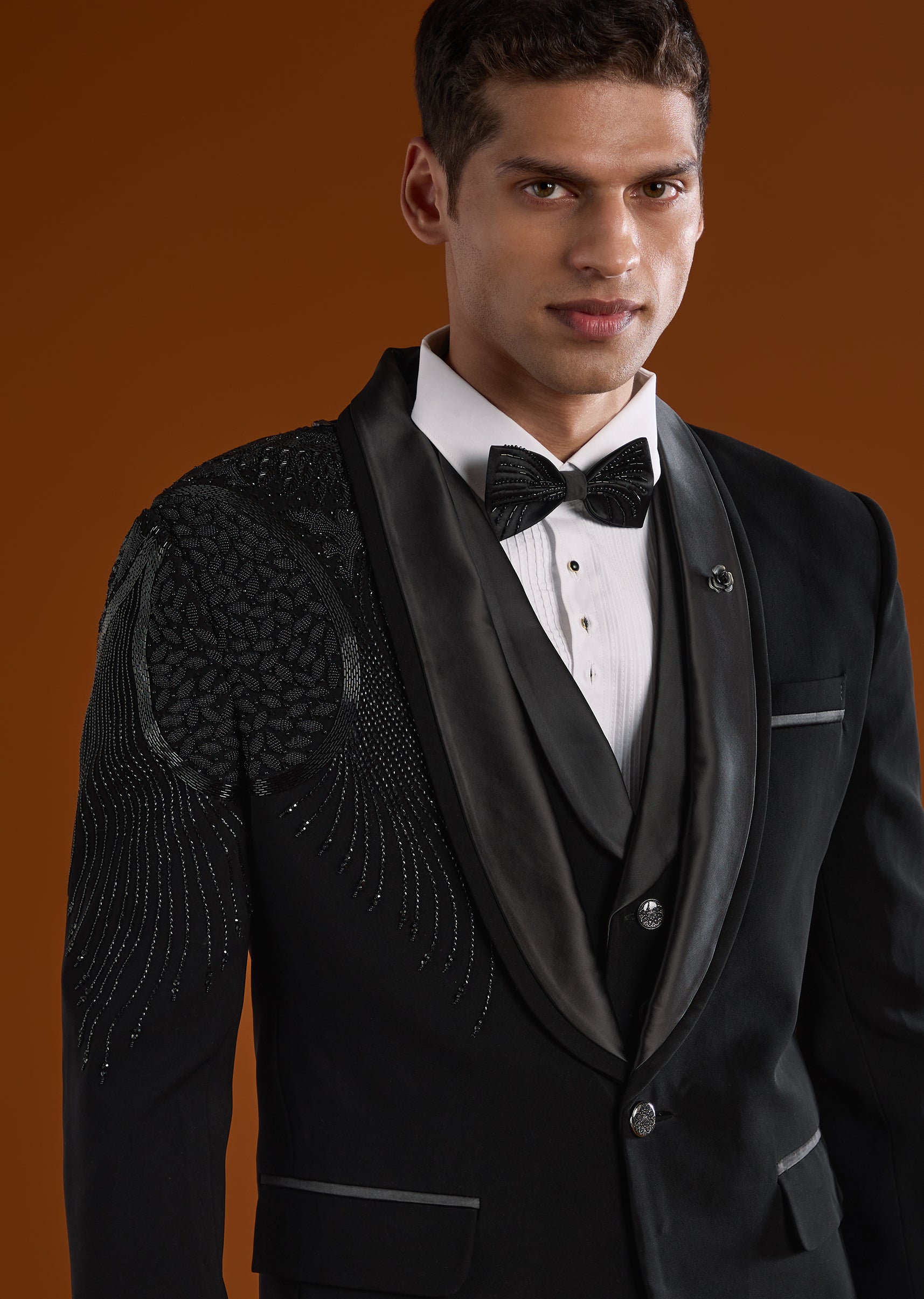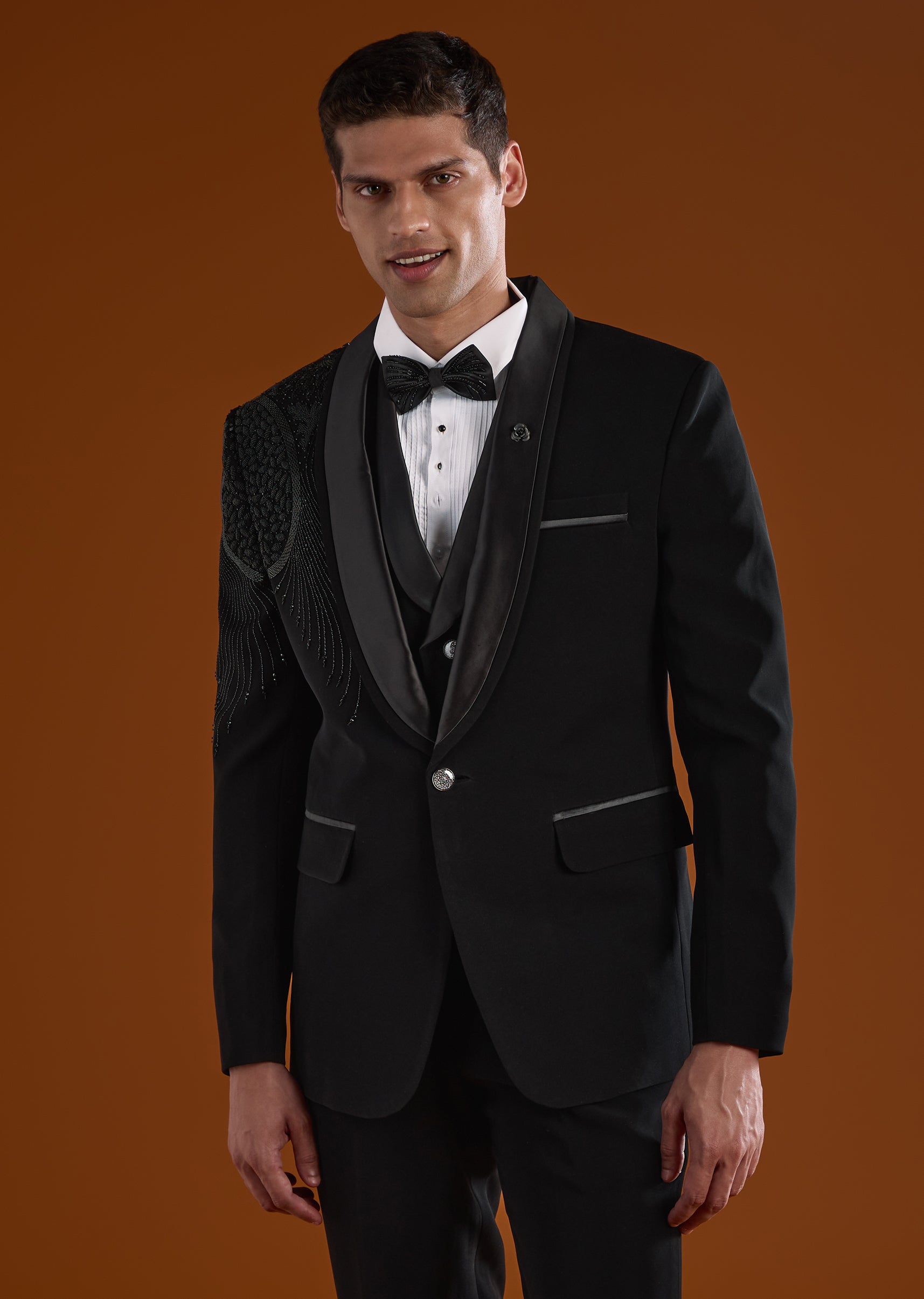 Black Mens Tuxedo With Thread Beads And Cut Dana Work
